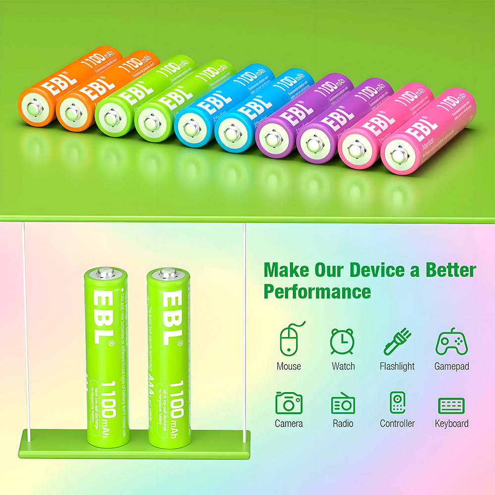Pilha Recarregável EBL AAA 1100mAh Kit 10 Pilhas Ni-MH