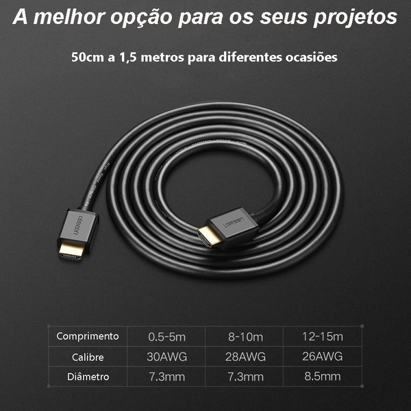 Cabo HDMI Ugreen 15M 4K Full HD TV Monitor Alta Velocidade