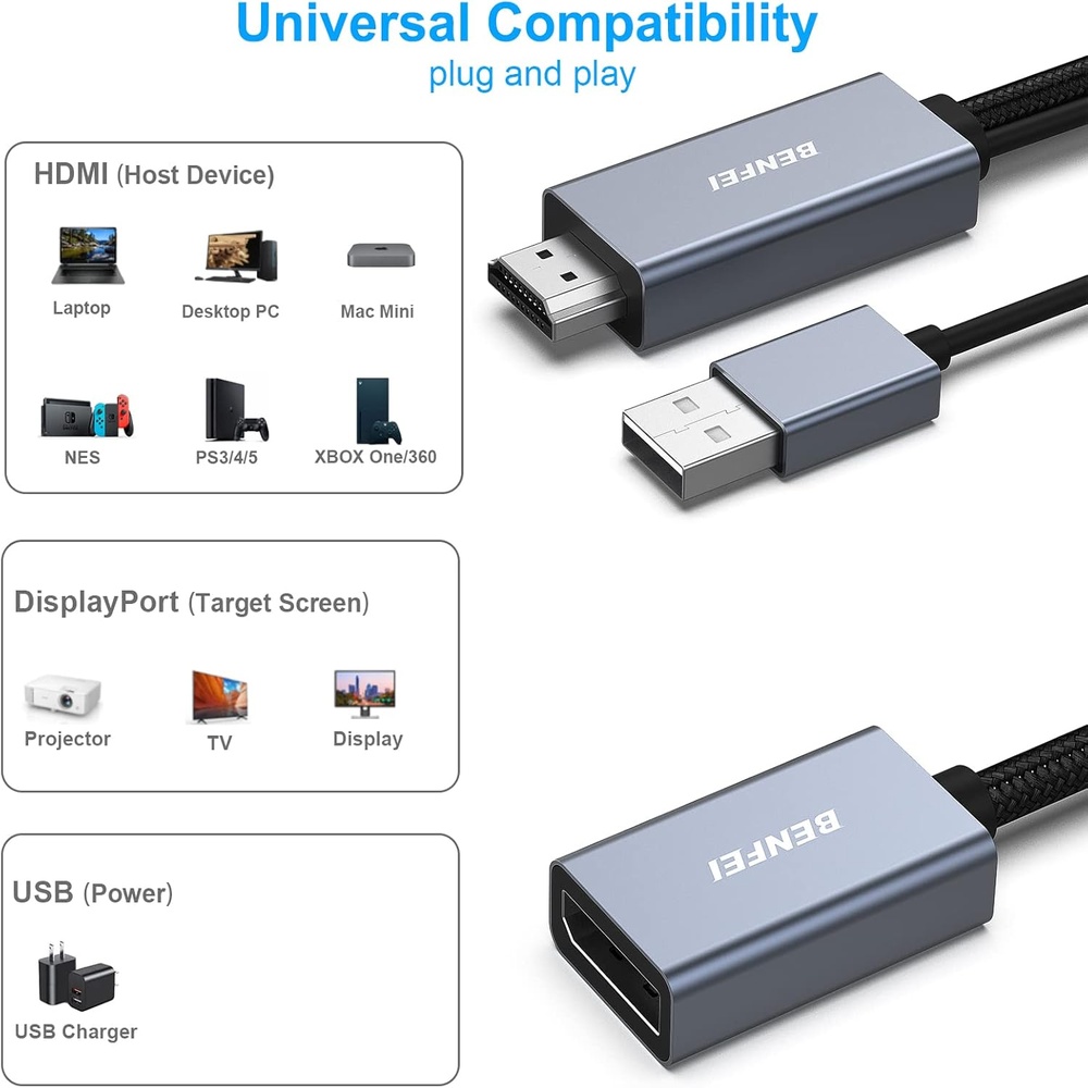 Benfei Adaptador HDMI Para DisplayPort 4K 30Hz Conversor
