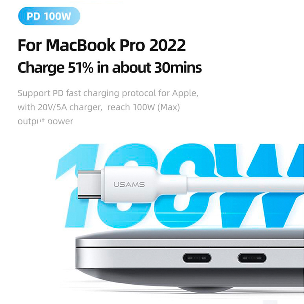 Cabo Usb Usams Tipo C pra Tipo C Pd 100W 3 Metros Branco