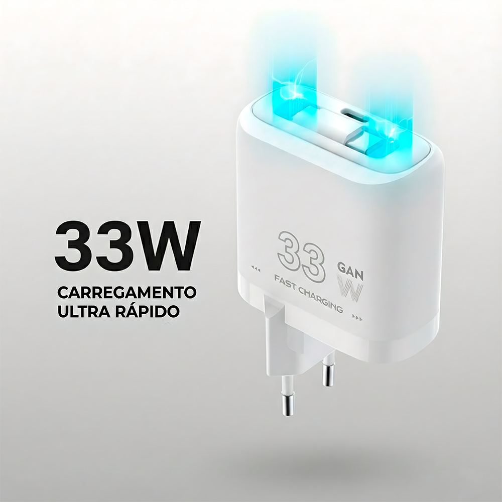 Carregador de Parede Life GaN 33W USB C/A Carga Rápido