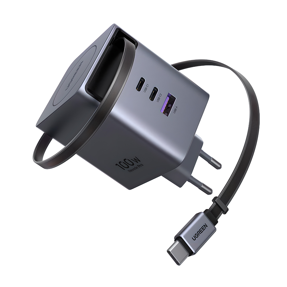 Carregador UGREEN GaN 100W Porta USB-A/C Cabo USB-C Retrátil