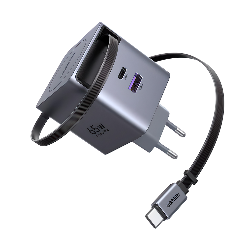 Carregador UGREEN 45W USB-C GaN 2 Portas Cabo Usb C Retrátil