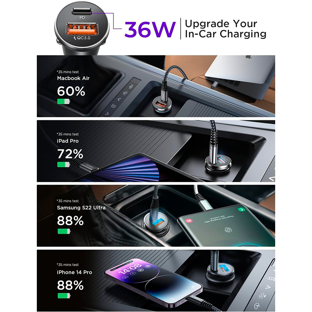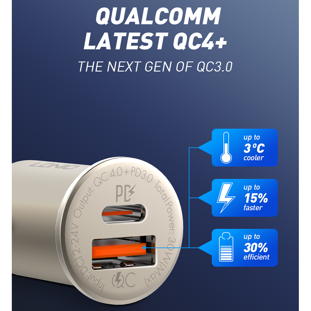 Carregador Veicular Carro Usb A/C Ldnio PD QC4.0 Dourado