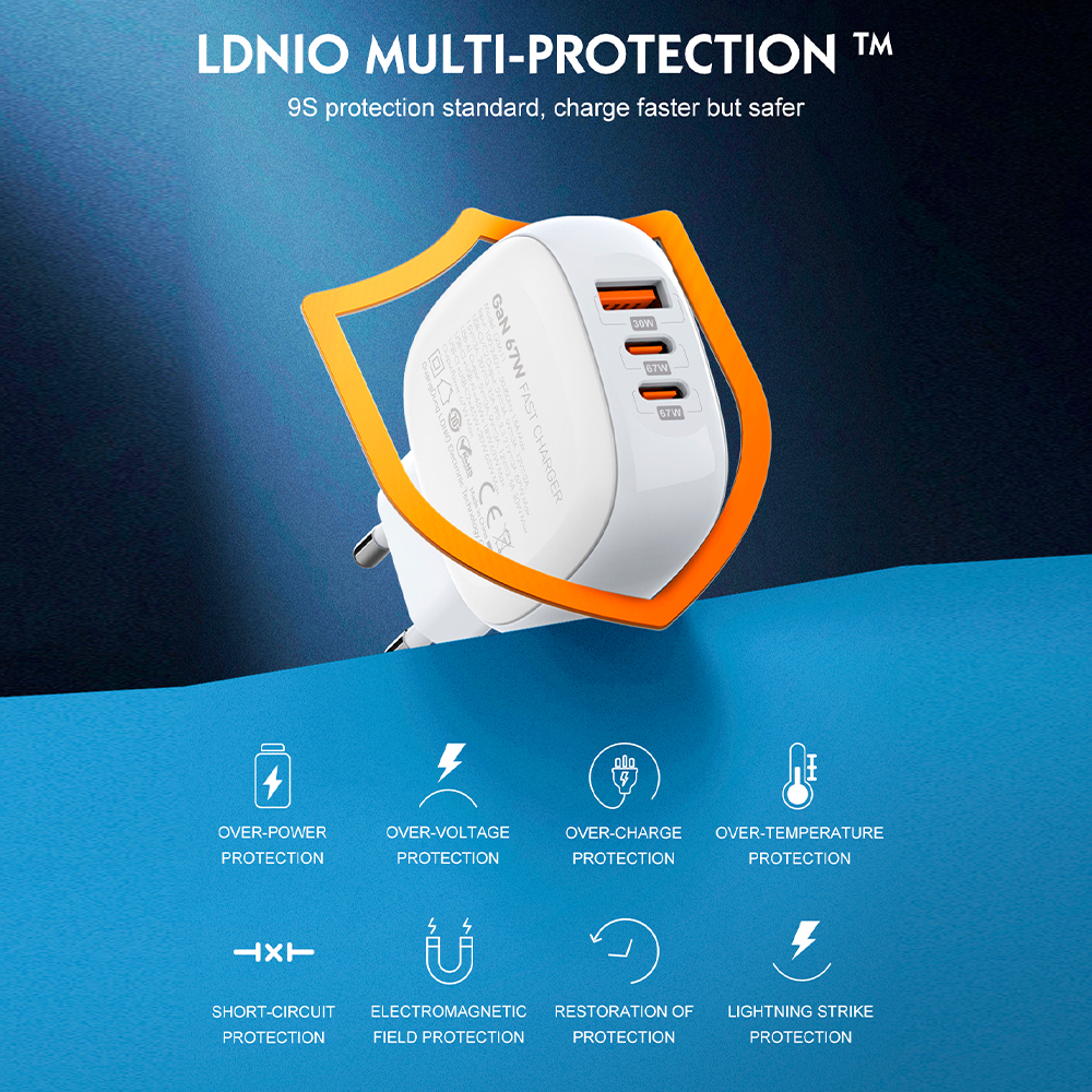 Carregador LDNIO 67W Super Rápido, Cabo Type-C Lightning