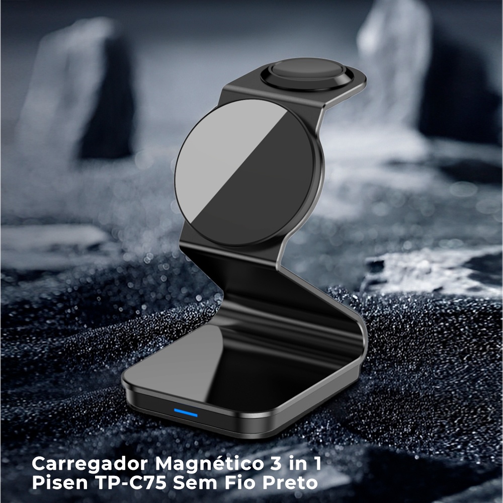 Carregador Magnético 3 in 1 Pisen Tp-c75 Sem Fio Preto