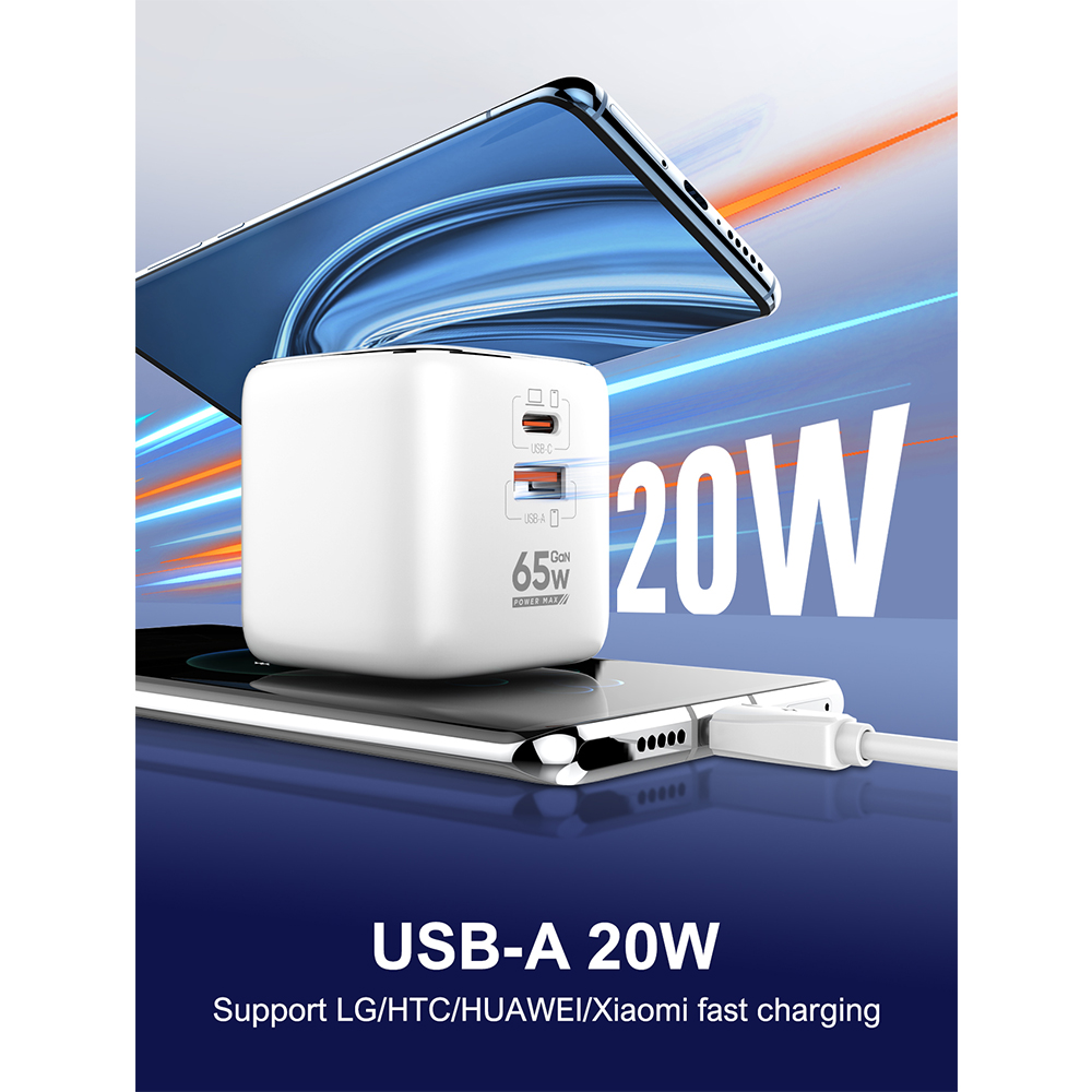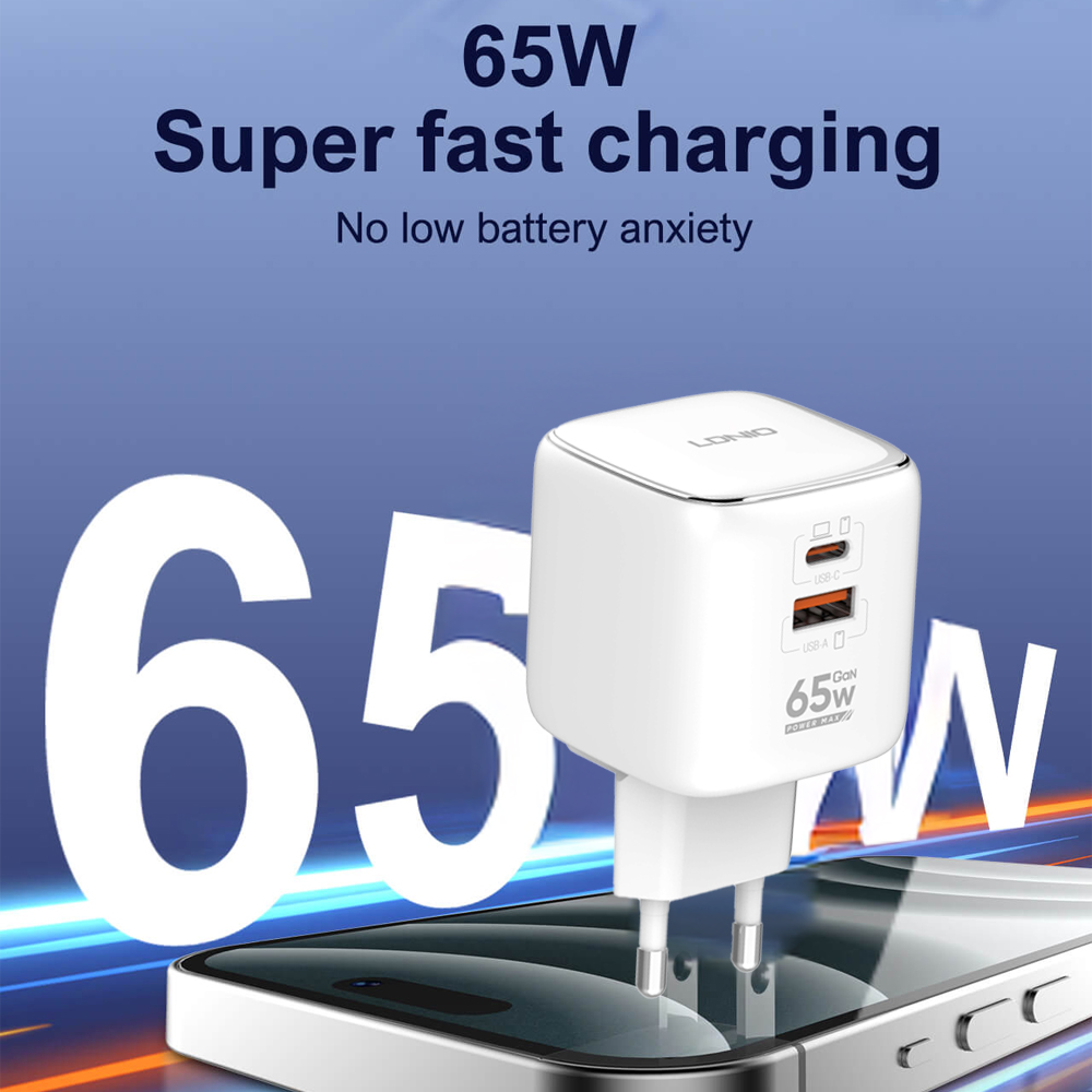 Carregador Rápido Ldnio GaN 65W 2 Usb-C/Usb-A PD QC4.0