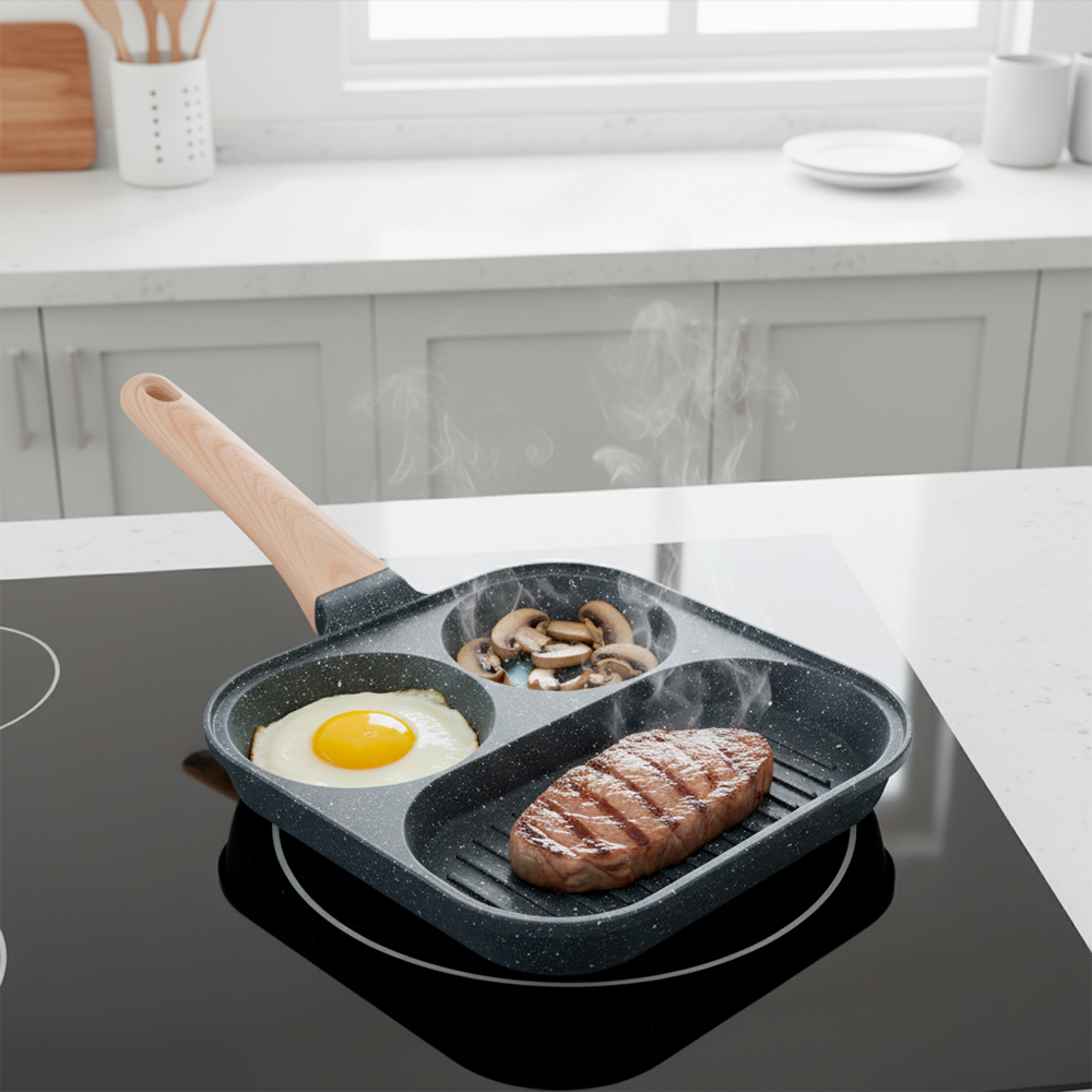 Frigideira 3 em 1 Antiaderente XY127 Bife Fogão Indução