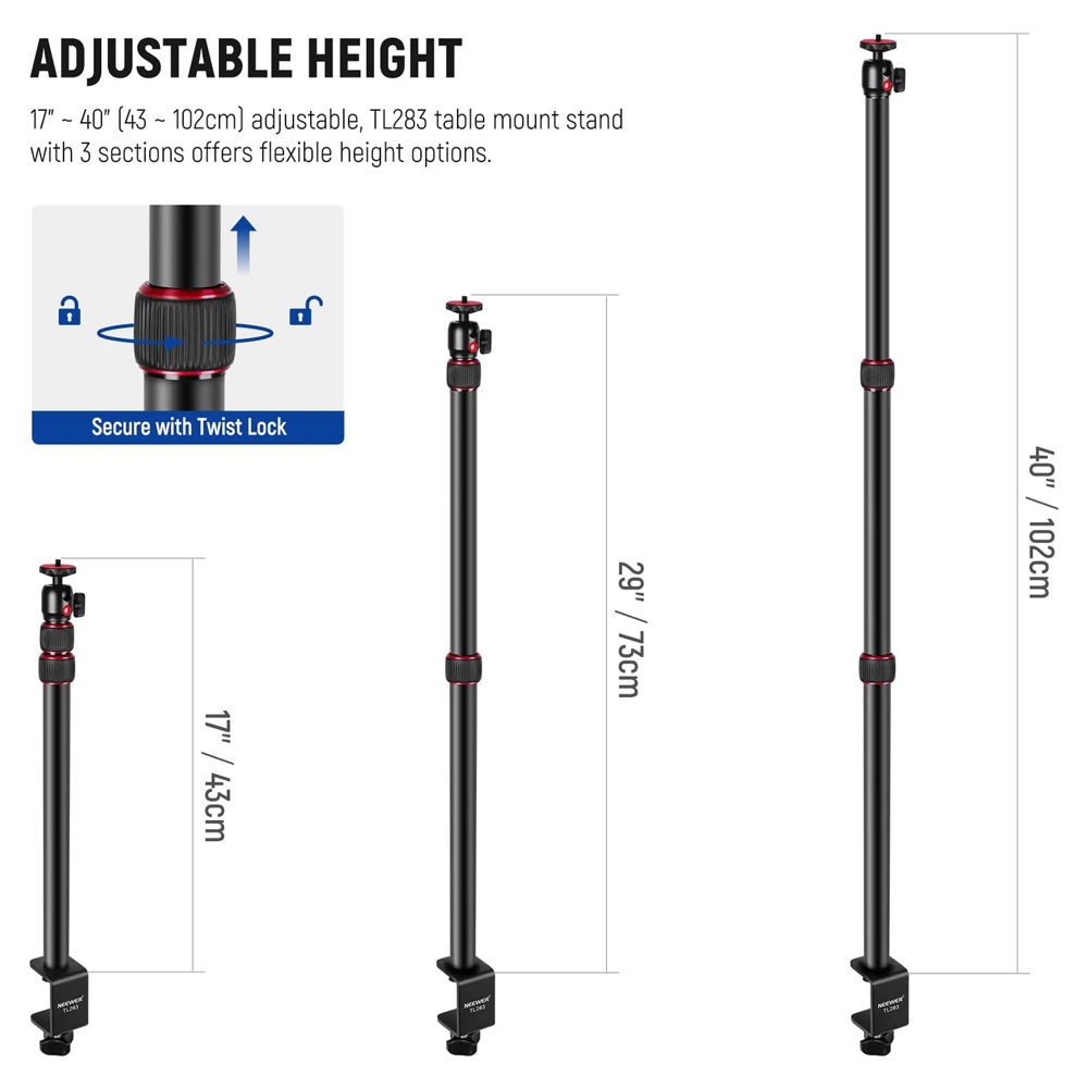 Suporte de Mesa Câmera Neewer 1/4″ Cabeça Esférica Preto