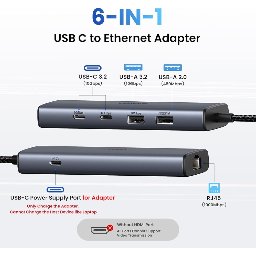 Hub USB-C UGREEN 6 em 1 10Gbps Rj45 Ethernet USB-A USB-C 3.2