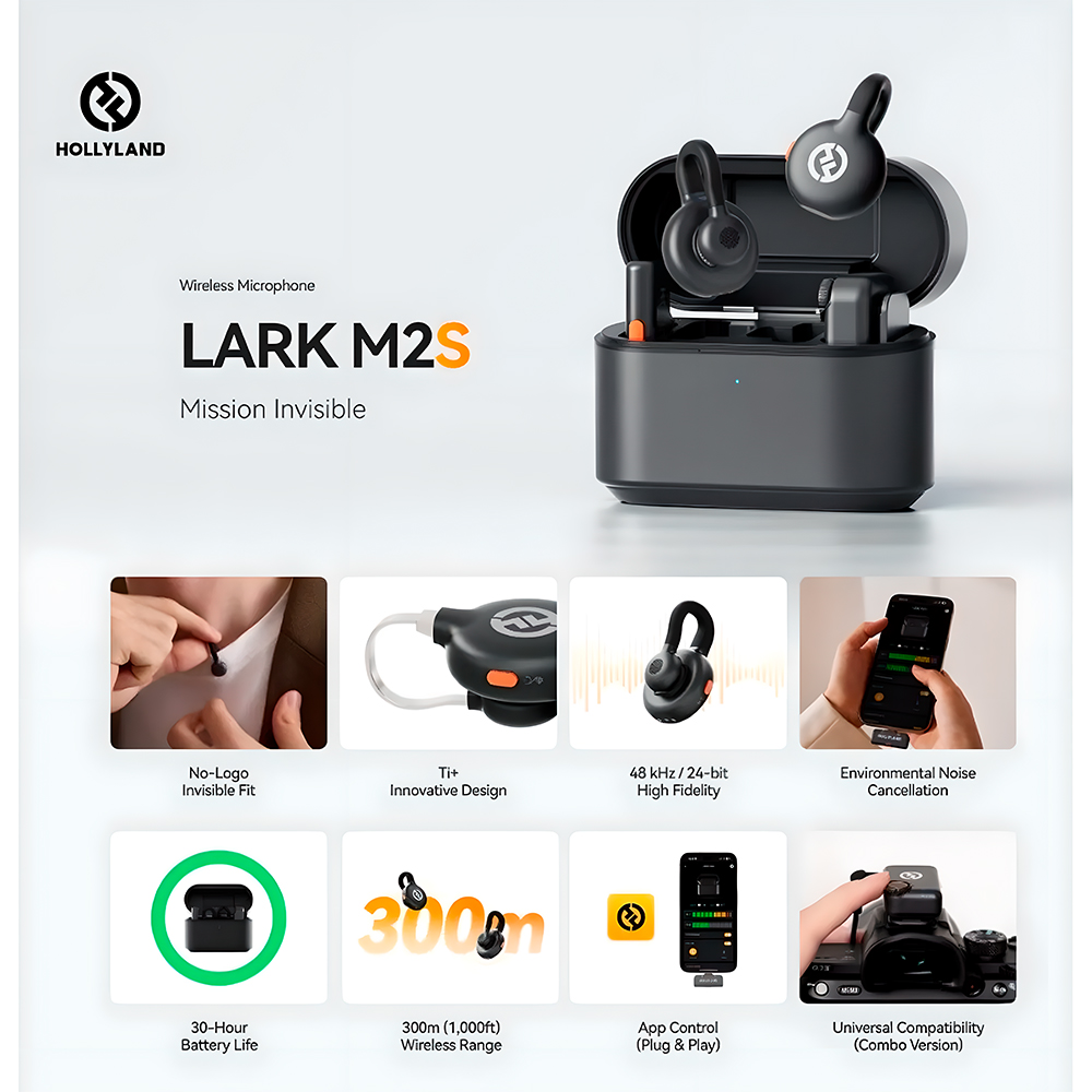 Hollyland Lark M2S Microfone Sem Fio P/ Celular Câmera Vlog