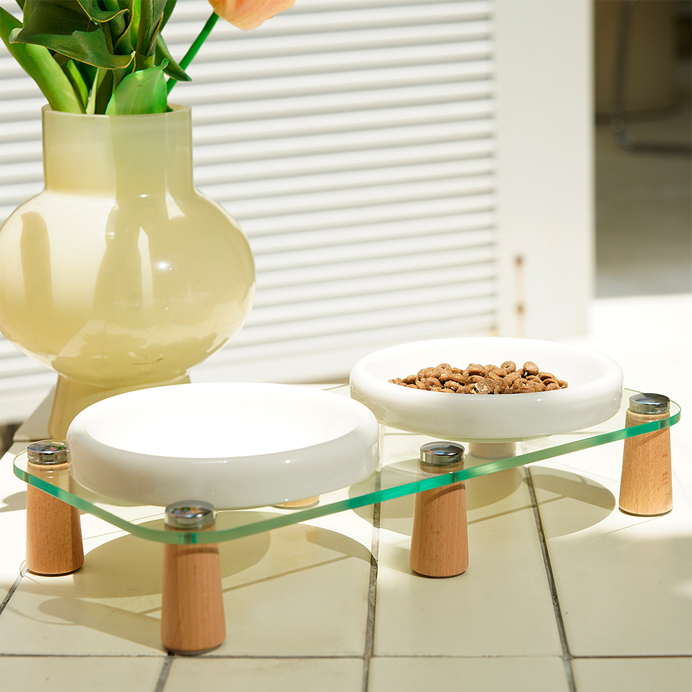 Tigela Cerâmica Life 31002WT com Suporte de Madeira