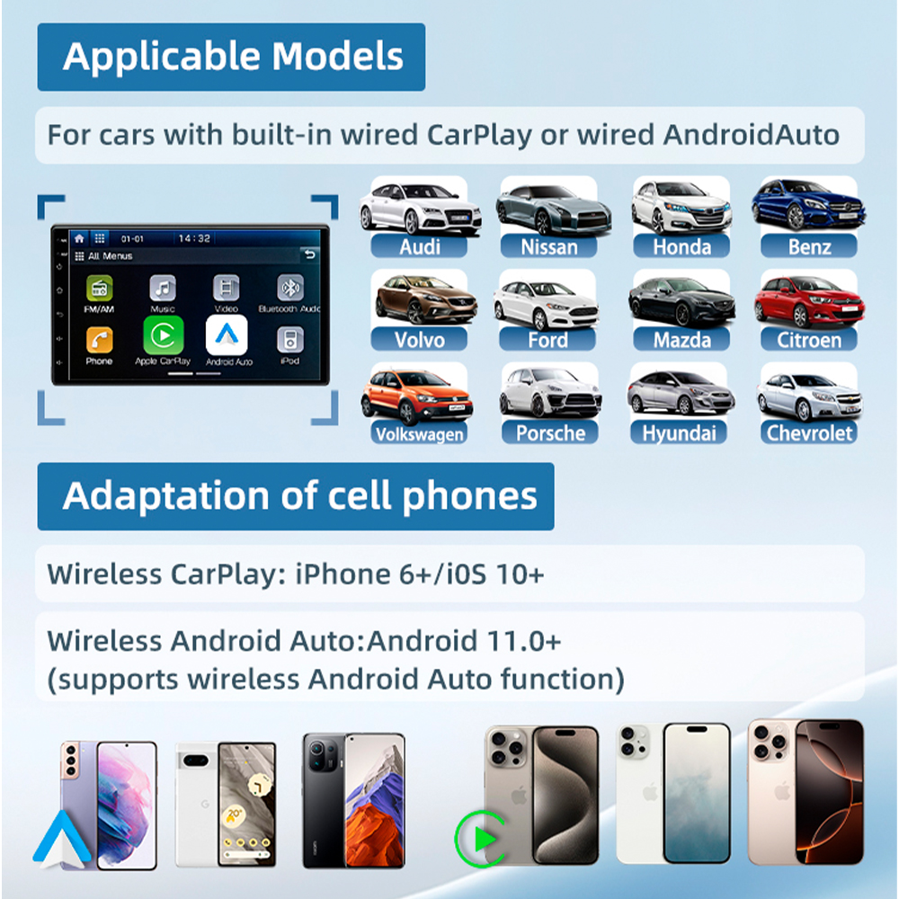 5. Compatibilidade Ampla e Atualizações: O Carlinkit Mini Ultra oferece compatibilidade com uma vasta gama de veículos equipados com Apple CarPlay ou Android Auto de fábrica. Mantenha seu dispositivo sempre atualizado através de firmware de fácil acesso, garantindo a melhor performance, novas funcionalidades e uma vida útil prolongada do seu adaptador. Garantia 90 dias