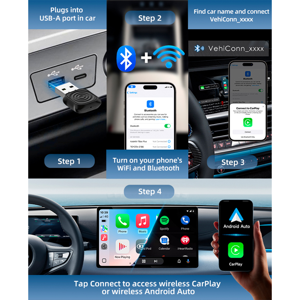 2. Instalação Simplificada Plug & Play: Projetado para máxima facilidade de uso, este adaptador é totalmente Plug & Play. Basta conectar o Carlinkit Mini Ultra na porta USB do seu carro e emparelhar via Bluetooth. Mantenha todas as funções originais da sua central multimídia e desfrute de uma integração perfeita em poucos segundos, sem complicações.