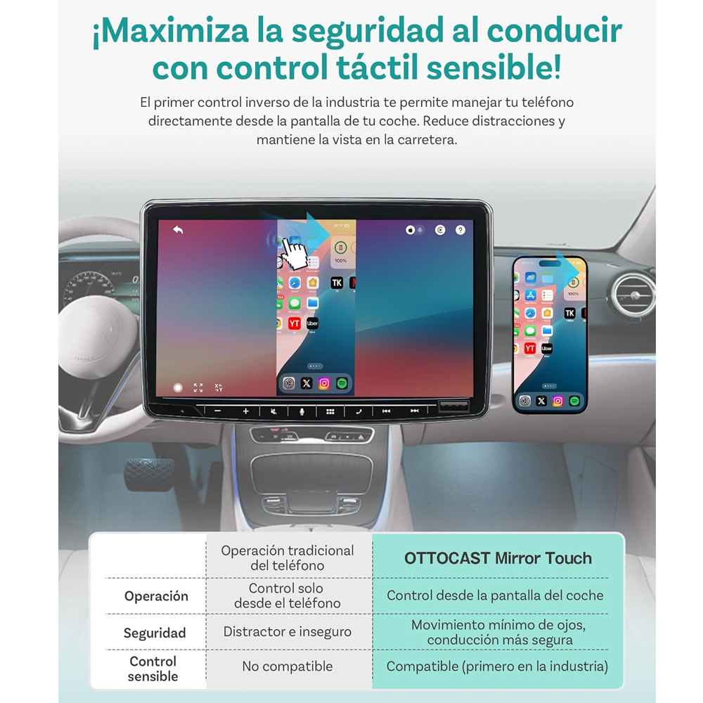Adaptador CarPlay sem Fio Ottocast Mirror Touch Espelhamento