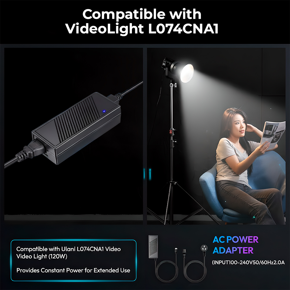 1. Potência e Compatibilidade Essencial: Experimente a eficiência com o Adaptador de Energia Ulanzi P006A, projetado especificamente para alimentar sua Luz de Vídeo Ulanzi de 120W, garantindo potência estável e contínua para suas sessões de gravação e fotografia profissional.