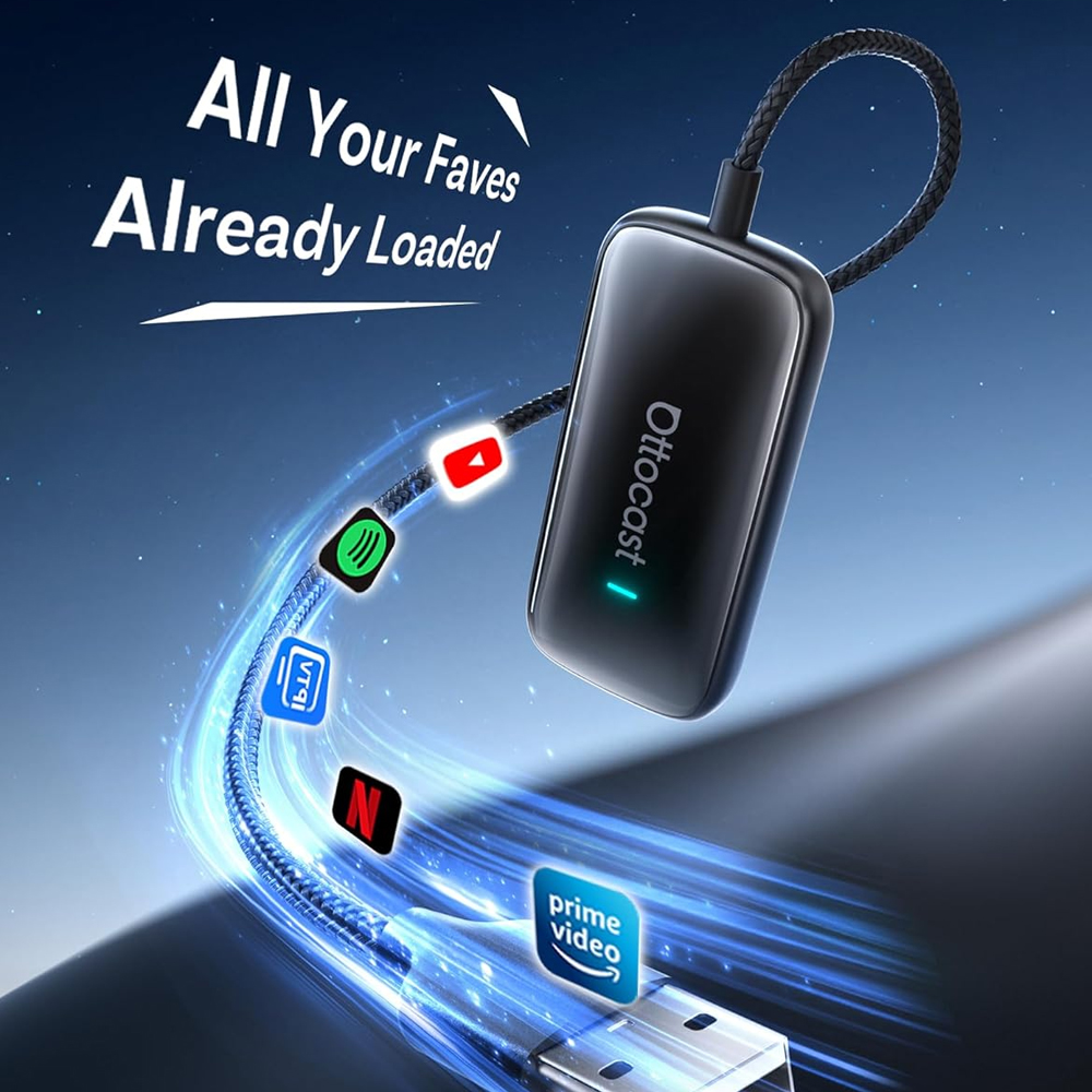 Adaptador de Vídeo sem Fio Ottocast 2026 Play2Video Ultra Magic AI Box 3 em 1, Streaming Netflix e YouTube Integrado, CarPlay e Android Auto Wireless com Wi-Fi 6 e Bluetooth 5.4 para Multimídia Original