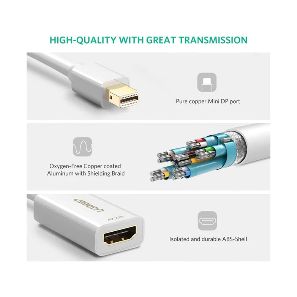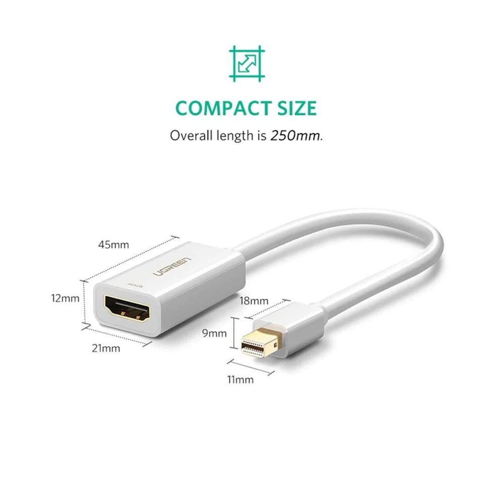 Adaptador de Vídeo Ugreen Mini DisplayPort Macho p/Hdmi Fêmea Resolução 4k Conexão Plug and Play Conector Banhado a Ouro Proteção Interna Multicamadas Branco