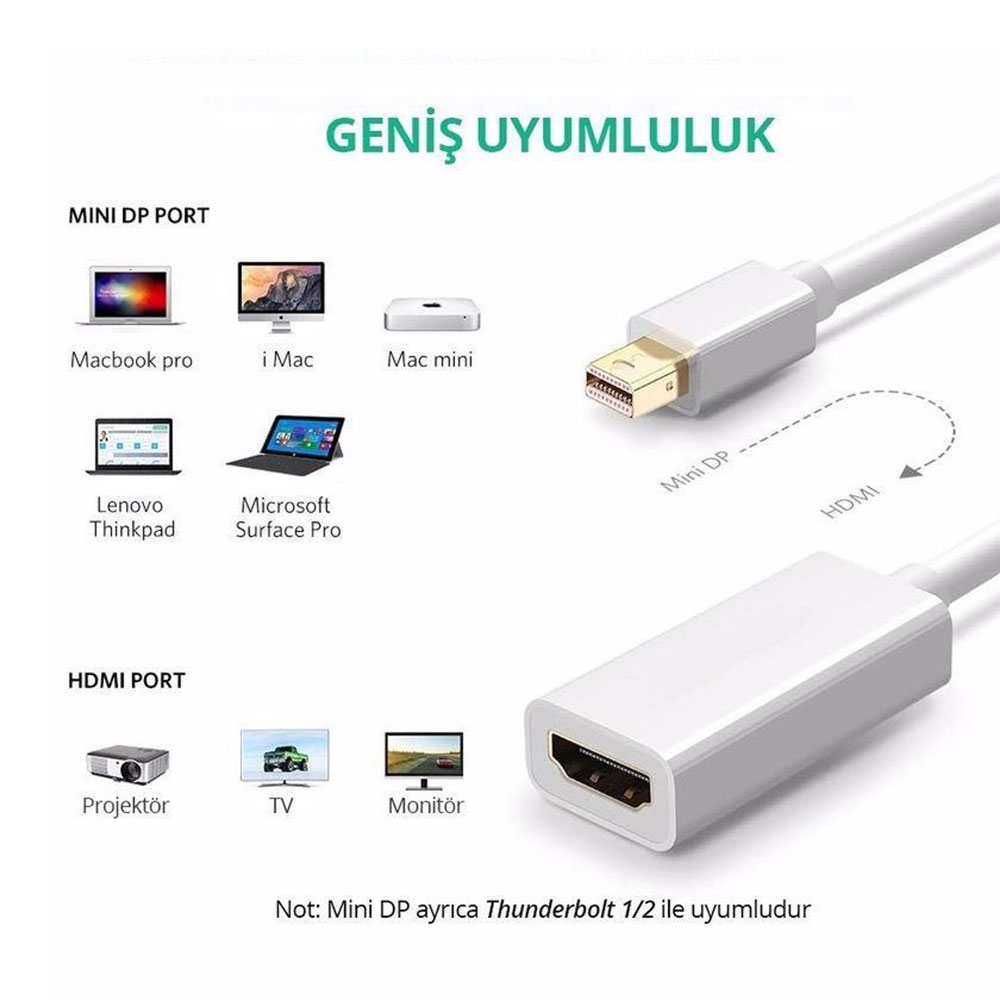 Adaptador Ugreen Mini DisplayPort p/Hdmi 4k Fêmea Branco
