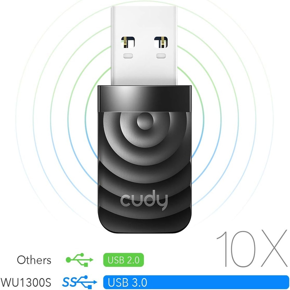 Adaptador Wi-Fi Cudy AC1300Mbps 5GHz 2.4GHz USB 3.0, Alta Velocidade, Compatível com Windows, Mac OS, Linux – Conexão Estável e de Longo Alcance para PC e Laptop