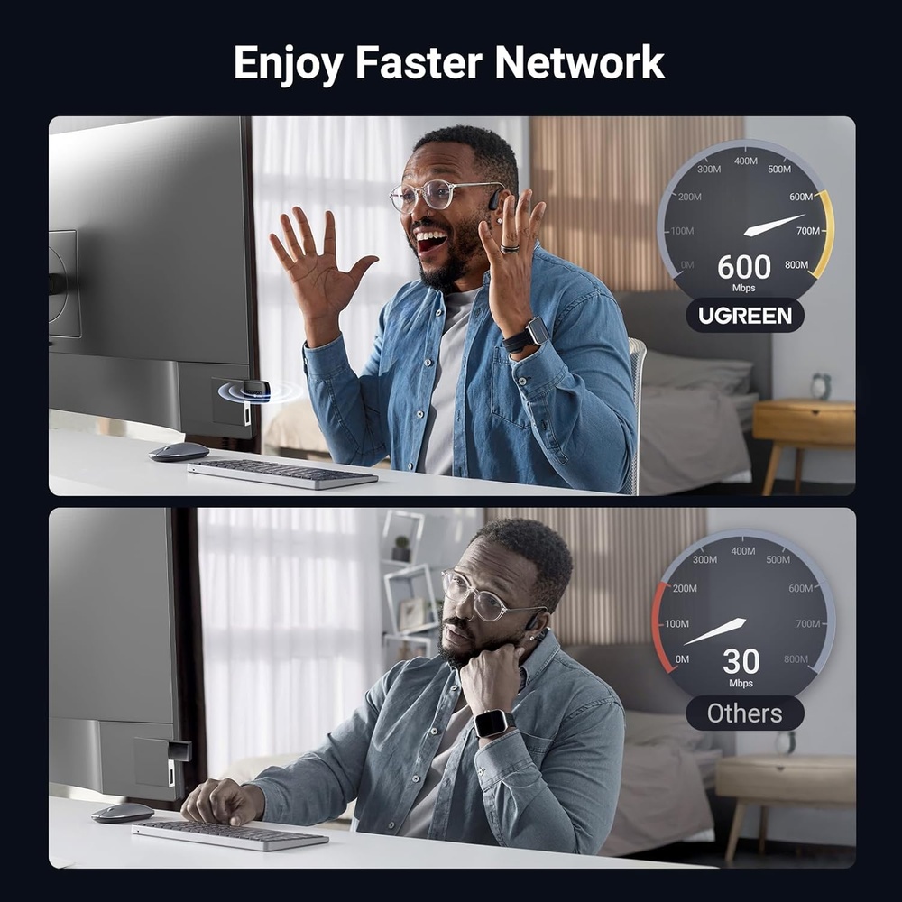 3. Instalação Simplificada Plug & Play: O Adaptador Ugreen possui driver integrado, tornando a instalação para Windows 10 e 11 rápida e descomplicada. Basta conectar o dispositivo USB ao seu PC Desktop e começar a usar imediatamente, sem a necessidade de CDs ou downloads complexos. Uma solução prática e eficiente para ter internet sem fio em segundos.