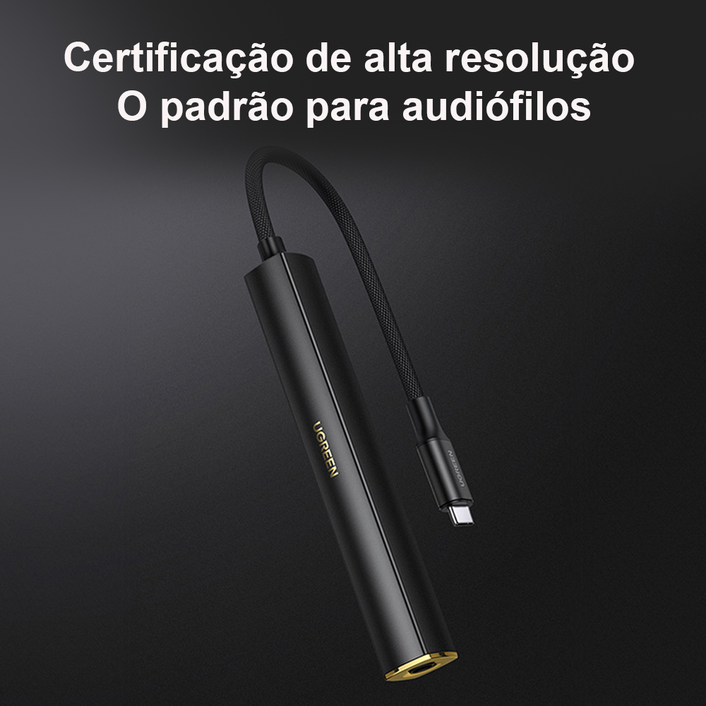 Amplificador Ugreen Usb C 3.5mm Dac Chip Hi-Res Preto Áudio Superior Compatível Dispositivos Ios Android Experiência Sonora Imersiva