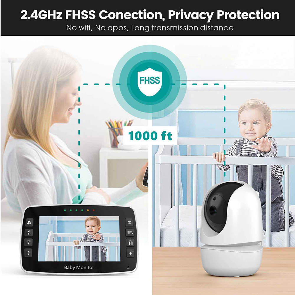 4. Conexão 2.4Ghz: A babá eletrônica SM43A opera na frequência de 2.4Ghz, que é conhecida por sua estabilidade e menor interferência. Isso garante uma conexão segura e confiável entre a câmera e o monitor, reduzindo as chances de perda de sinal.