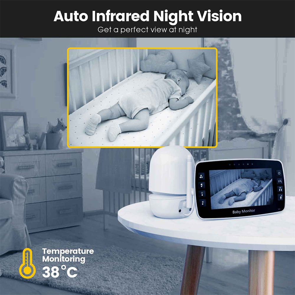 3. Detecção de Som e Visão Infravermelha: Este dispositivo tem a capacidade de detectar sons, como o choro do bebê, alertando os pais imediatamente. A visão infravermelha assegura que a vigilância não seja interrompida mesmo em condições de baixa iluminação, garantindo uma visão clara do bebê durante a noite.