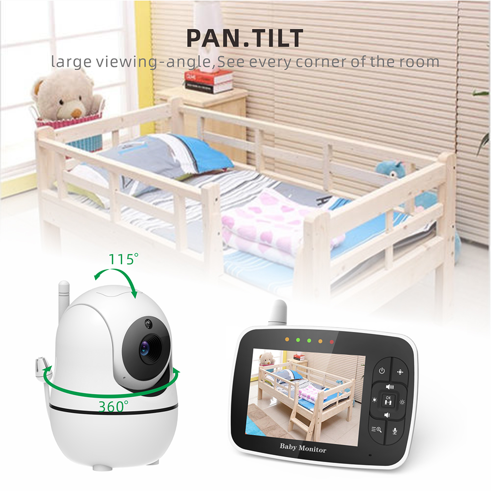Com o monitor de bebê de 3,5 polegadas e câmera de áudio e vídeo sem fio da Baby Monitor você pode ver e ouvir seu bebê a qualquer hora do dia ou da noite; Sendo possível contar com tecnologia FHSS 2.4Ghz para proporcionar uma excelente conexão com sinal privado e seguro, capacidade de bateria superior, possibilitando contar com até 10 horas de funcionamento, visão noturna infravermelha para melhor visualização do seu bebé a partir do monitor dos pais, mesmo que a luz esteja apagada, LED com som activado para alertá-lo visualmente para qualquer som proveniente do quarto do bebé; Isso sem mencionar que ainda é possível contar com comunicação bidirecional, monitorização da temperatura, modo de Ativação por Voz, canção de ninar e Pan remota para controle de inclinação para que você olhe à volta do quarto bebé por controlo remoto;