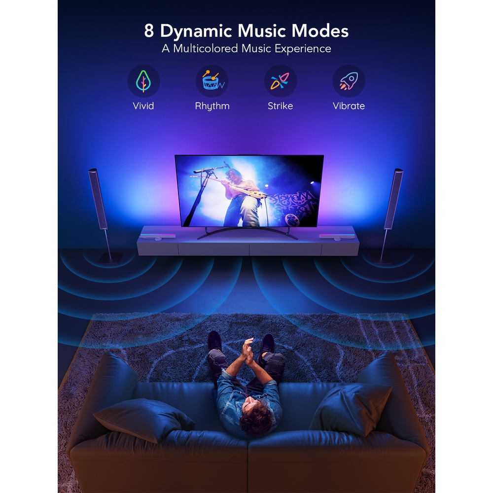 4. Sincronização com música: microfone integrado faz as luzes reagirem ao som de filmes, jogos e playlists, entregando efeitos dinâmicos que elevam a experiência de entretenimento na sua TV.