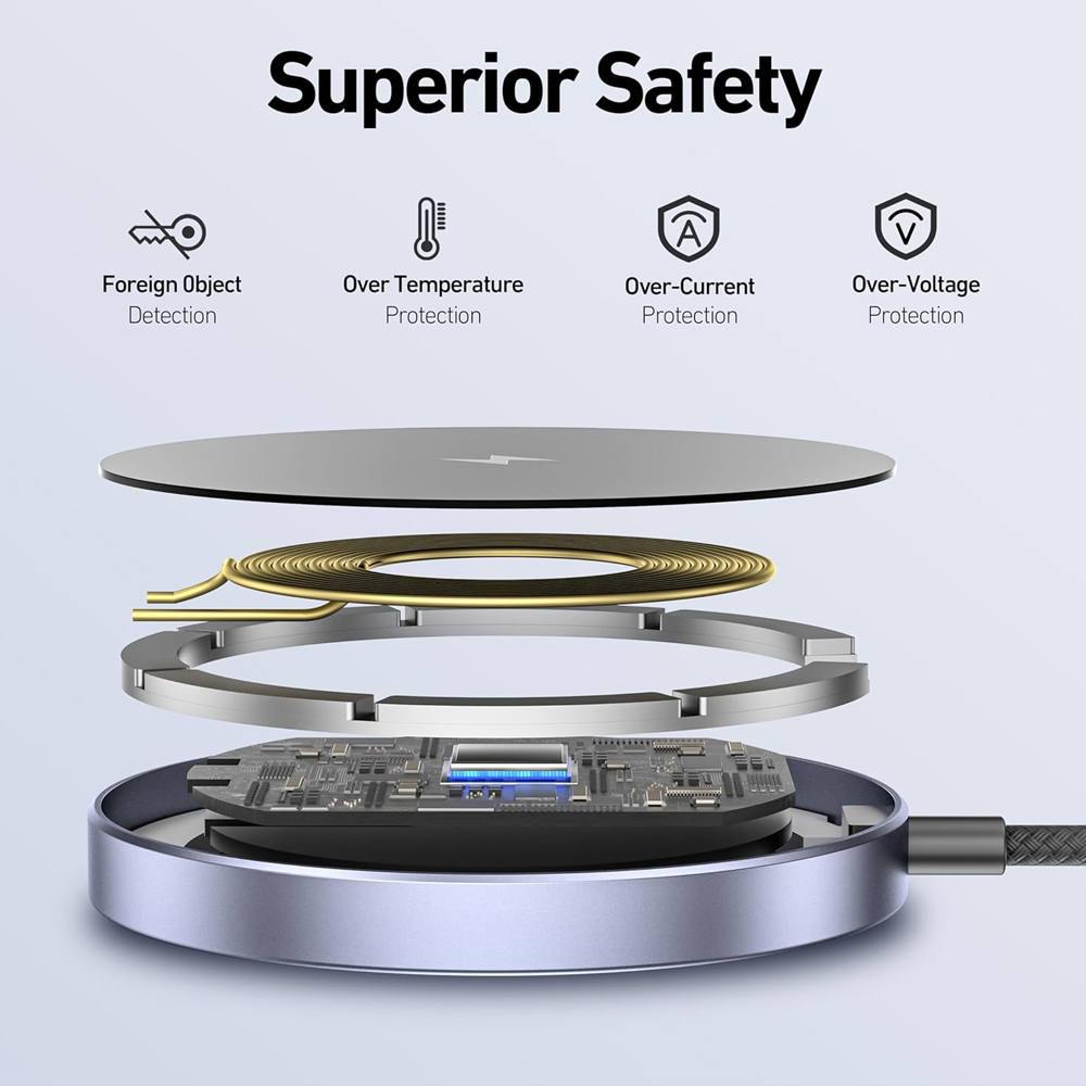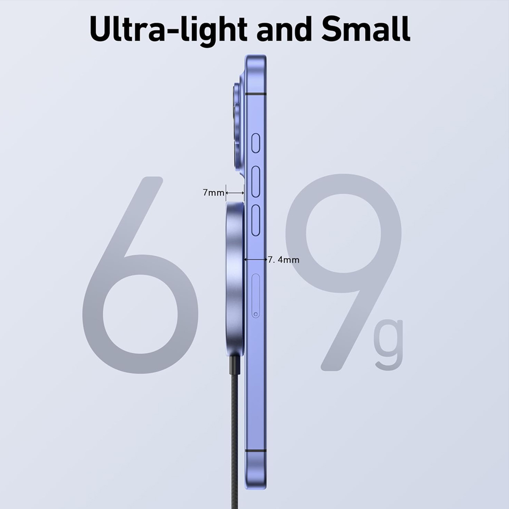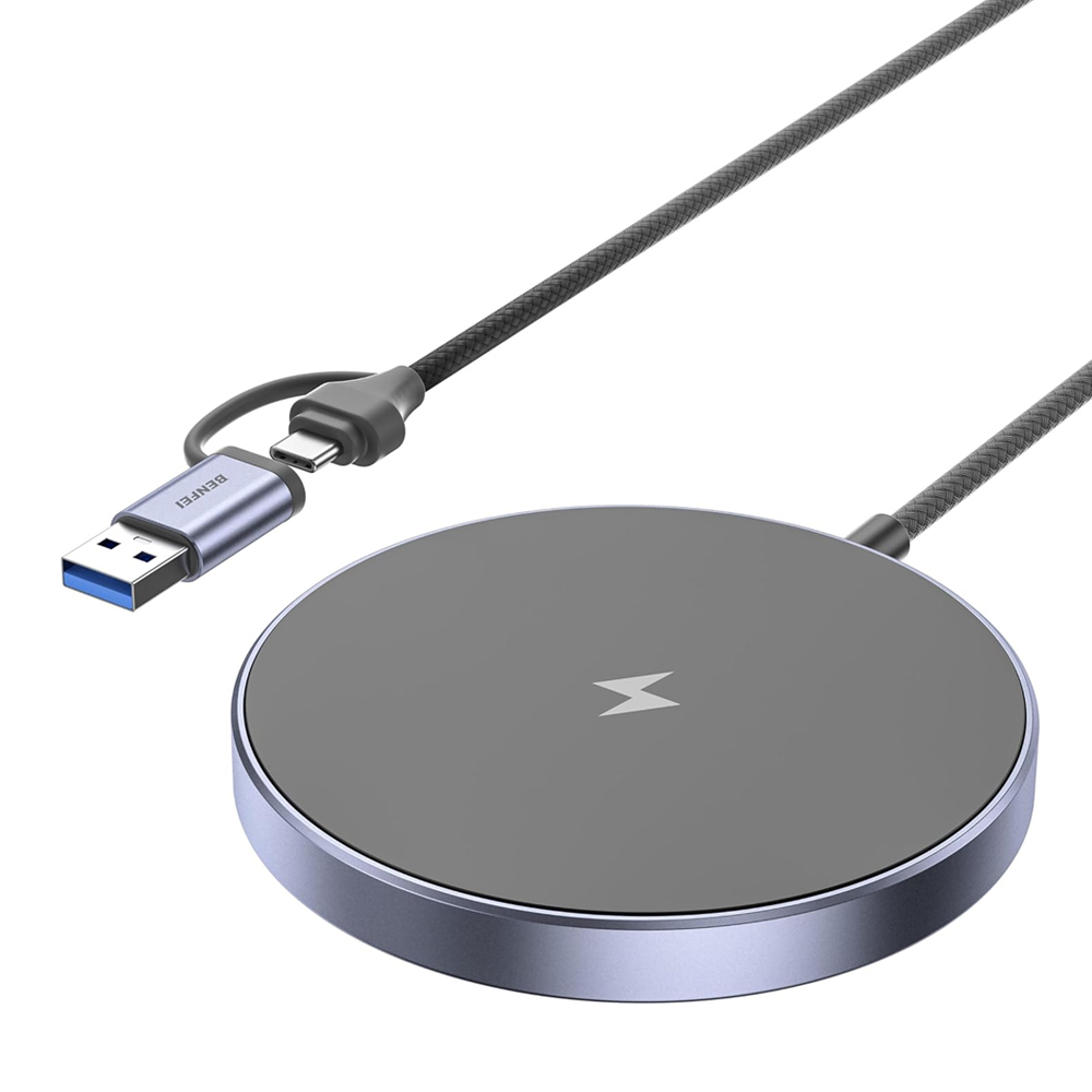 Benfei Carregador Magnético Sem Fio 15W Compatível Com MagSafe Para iPhone 12/13/14/15, Alinhamento Magnético Preciso, Design Compacto, Cor Cinza, Modelo 000401grey