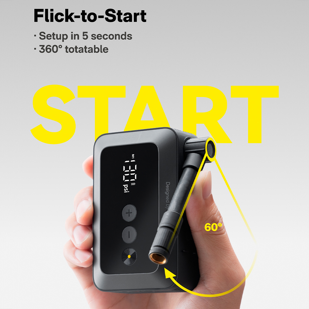 Equipado com uma bateria de íons de lítio de 2000 mAh, o dispositivo é capaz de inflar vários pneus com uma única carga. O carregamento USB-C permite uma reposição de energia rápida e conveniente, mantendo a bomba sempre pronta para uso.