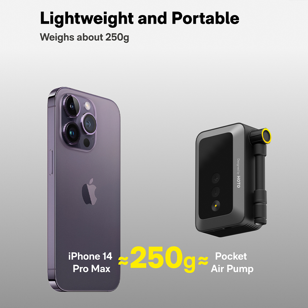 Pesando apenas 255 g, a bomba de ar Hoto Pocket é compacta e portátil, facilitando o transporte e uso em qualquer situação. Sua leveza e tamanho compacto tornam-na ideal para ciclistas e qualquer pessoa que precise de uma bomba prática e eficiente.