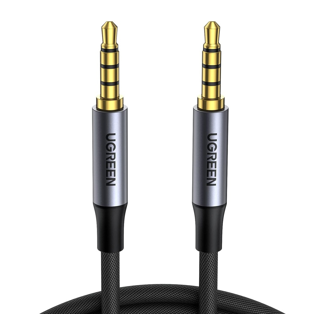 Cabo Ugreen P2 3.5mm Auxiliar Áudio Hi-Fi Estéreo 4 Polos Macho Macho Trançado Blindado 90cm Para Conectar Celular, Carro, Fones e Caixas de Som