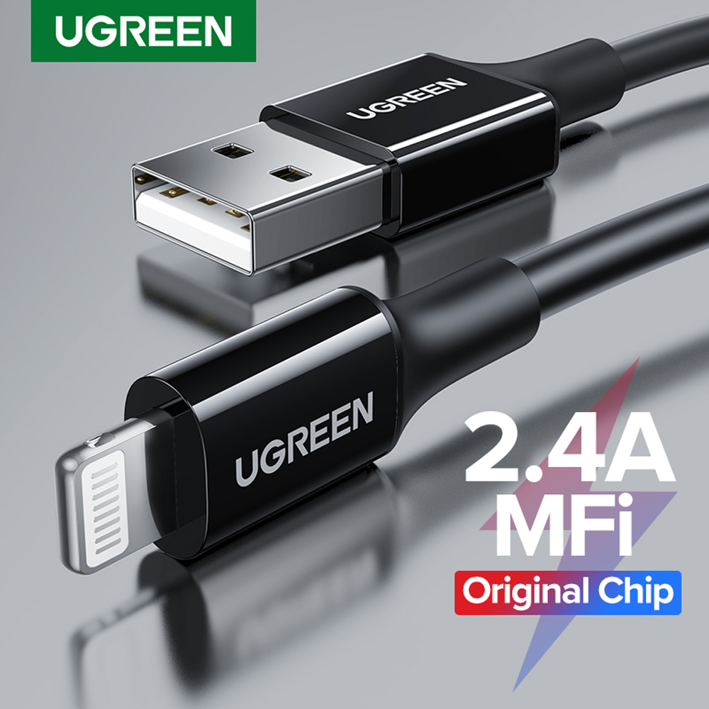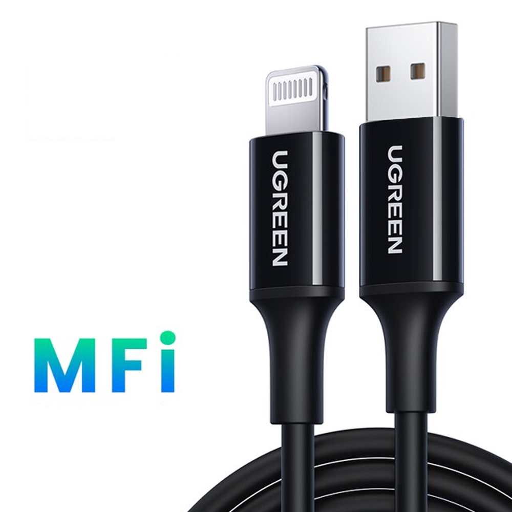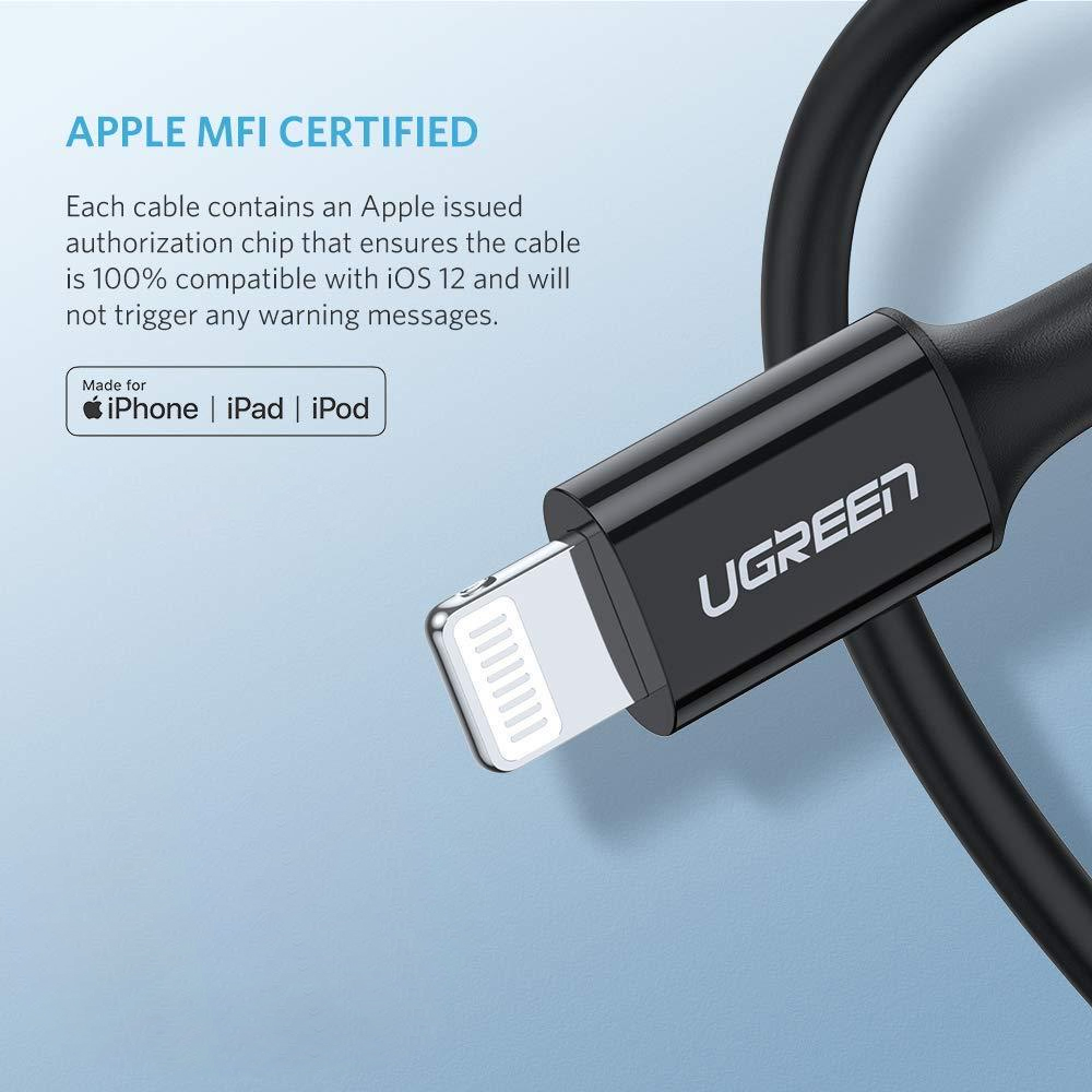 Ugreen Cabo de Dados Usb Tipo A para Lightning Velocidade de Transferência de Até 480Mbps Chipset Integrado Carregamento Rápido Compatível com iPhone, iPad e iPod Certificação MFi 1 Metro US155 Preto No Brasil