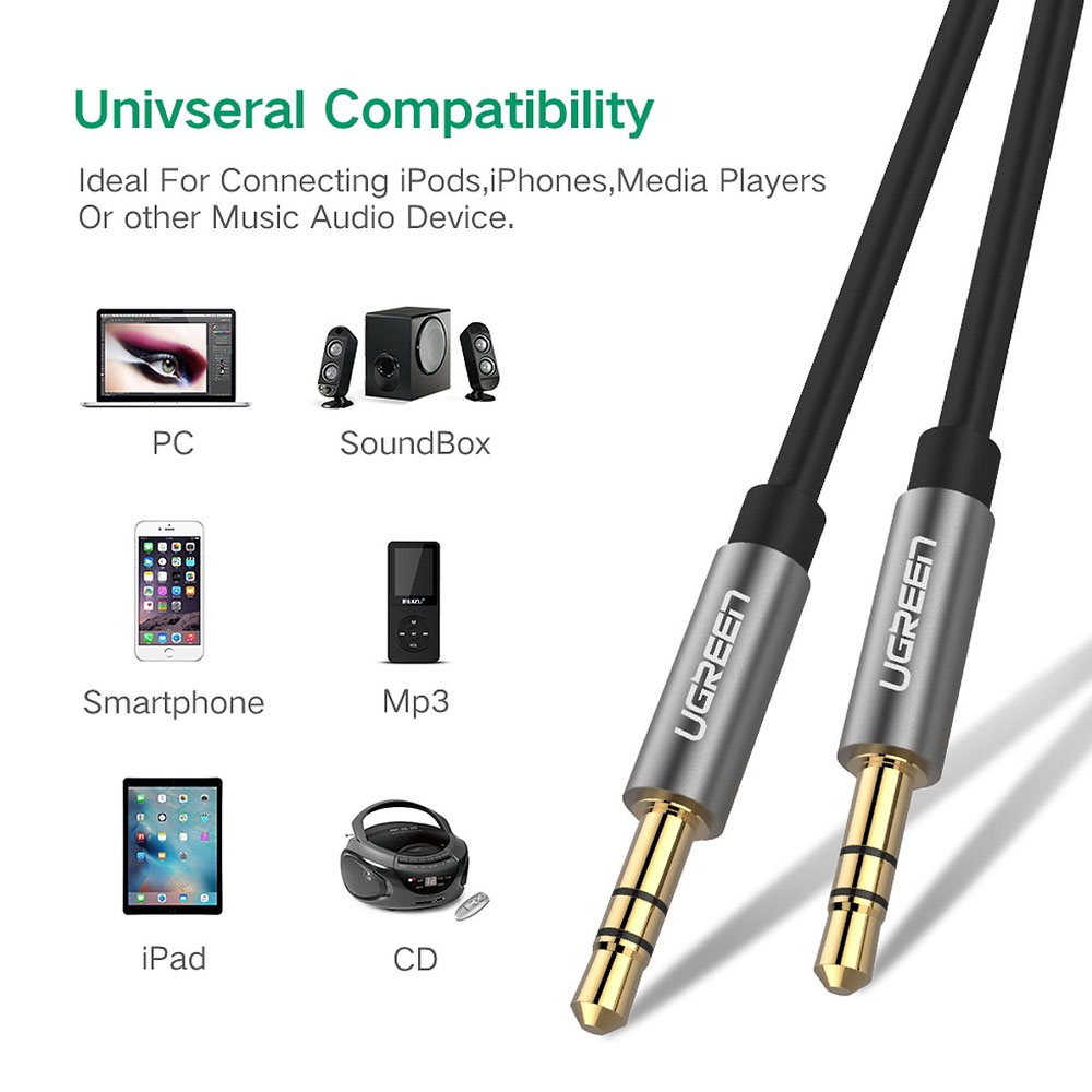 Cabo de Áudio Estéreo Ugreen 3.5mm Macho 5 Metros Preto Conexão Segura Som Nítido Ideal para Dispositivos Multimídia Flexibilidade Ampliada Compatibilidade Universal
