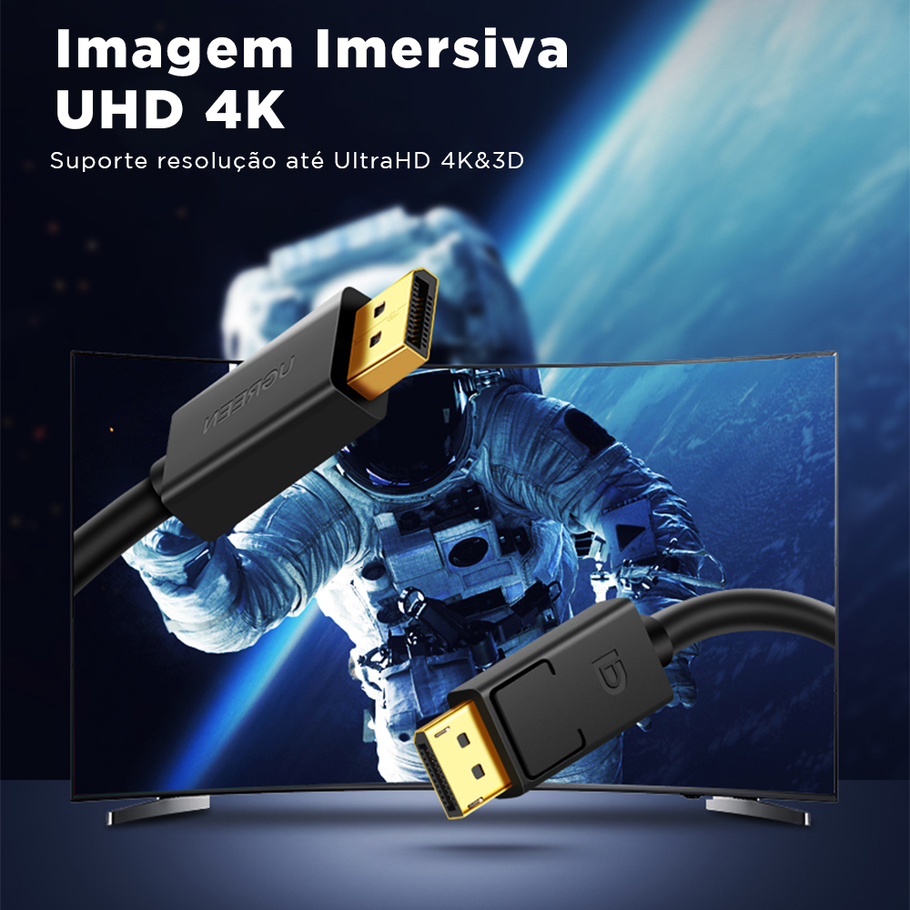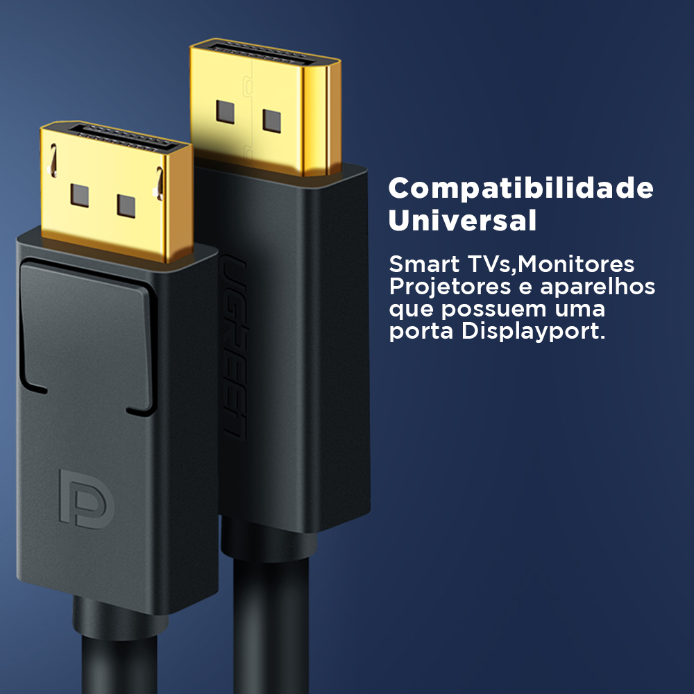 Cabo UGREEN DisplayPort 1.2 4K 60Hz e 1080p 144Hz 1.5Metro Macho/Macho para PC, Notebook e Monitor – Transmissão de Vídeo e Áudio em Alta Resolução 21.6 Gbps com Tripla Blindagem
