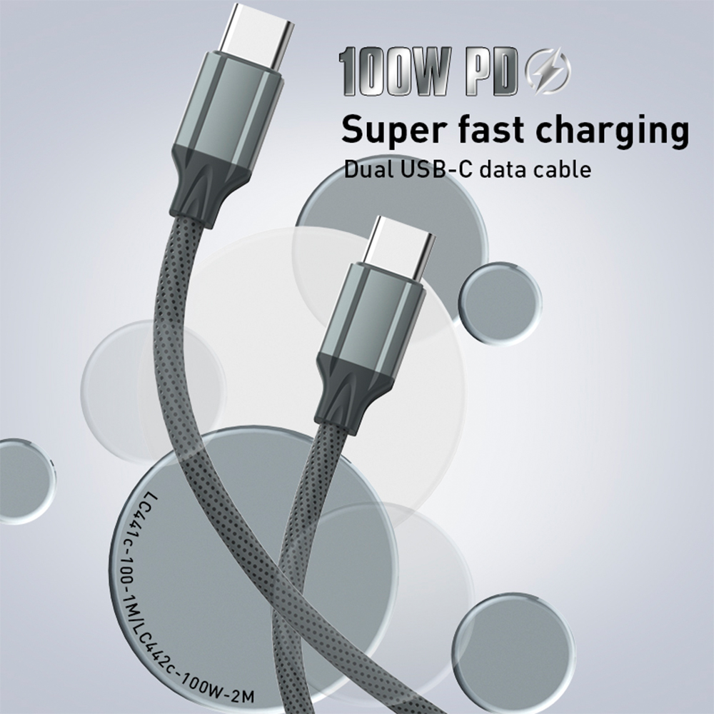 Cabo USB-C para USB-C Ldnio 100W com Chip E-marker | Carregamento Super Rápido e Transferência de Dados | 1 Metro Cinza | Cabo Type-C LC441c de Alta Potência para Notebook e Celular