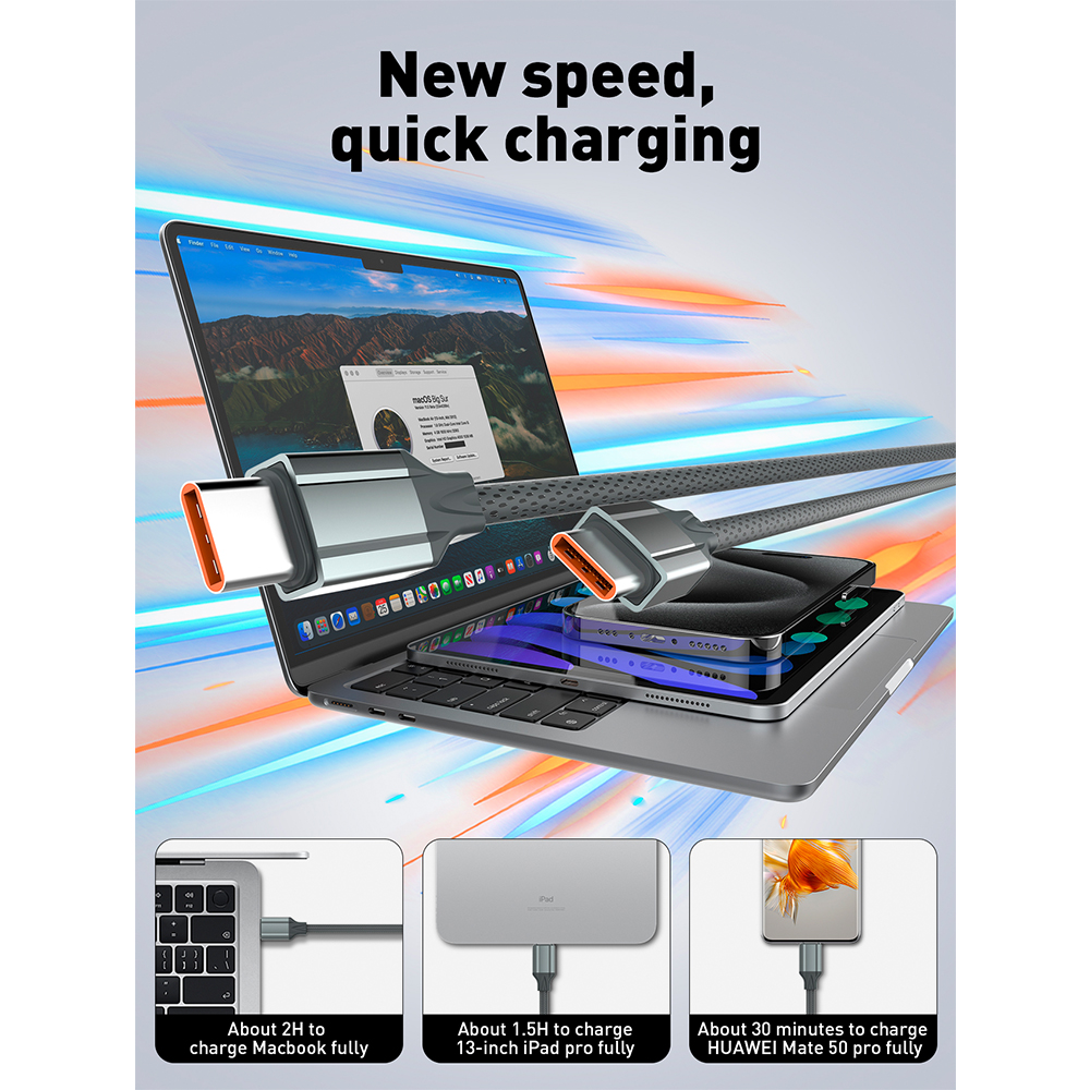 4. Compatibilidade Ampla com USB-C: Desenvolvido para máxima versatilidade, este cabo Type-C para Type-C é compatível com uma vasta gama de dispositivos, incluindo notebooks, celulares, tablets e outros aparelhos equipados com porta USB-C. Um acessório indispensável para quem busca um único cabo para todas as necessidades de carregamento e dados.