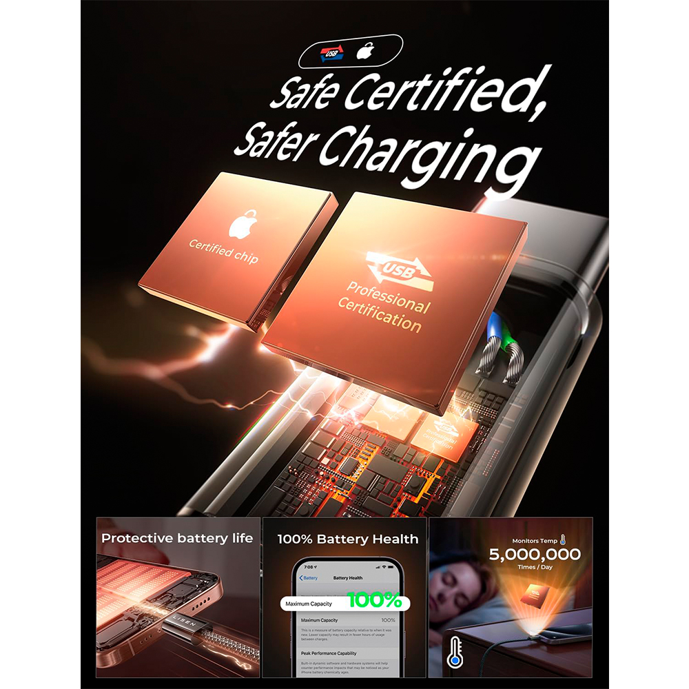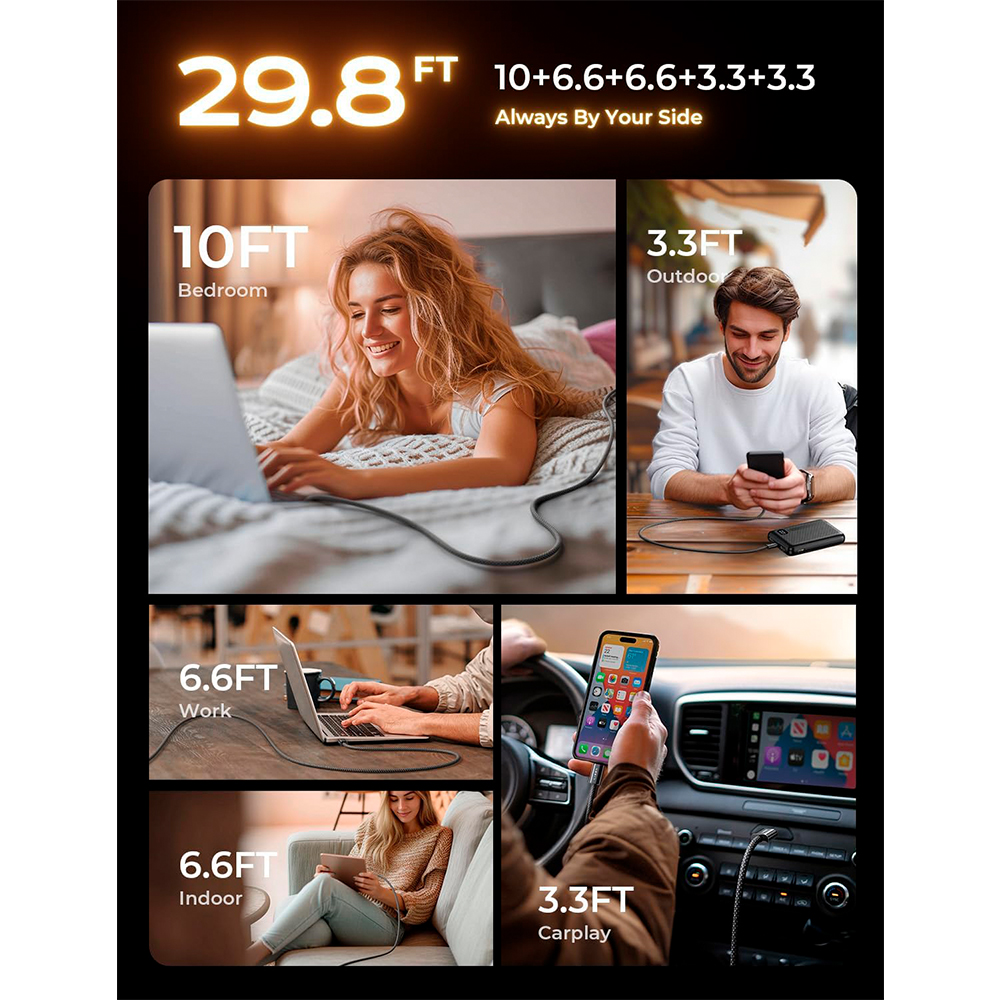 3. Construção em Nylon Trançado Reforçado: O cabo possui revestimento em Nylon Trançado Reforçado, oferecendo durabilidade excepcional e resistência contra emaranhados, desgastes, dobras e rachaduras, garantindo uma vida útil significativamente maior do que os cabos padrão.