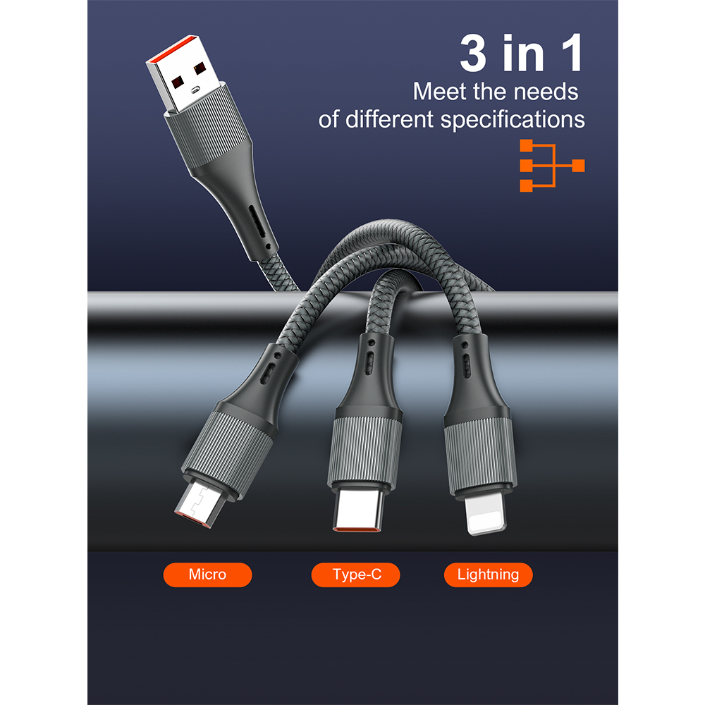 Cabo Usb Ldnio 3 em 1 para Carregamento Rápido 100W e Sincronização de Dados, com Conectores Tipo C, Micro USB e Lightning. Versatilidade e Potência em 1.2 Metros para Seus Dispositivos