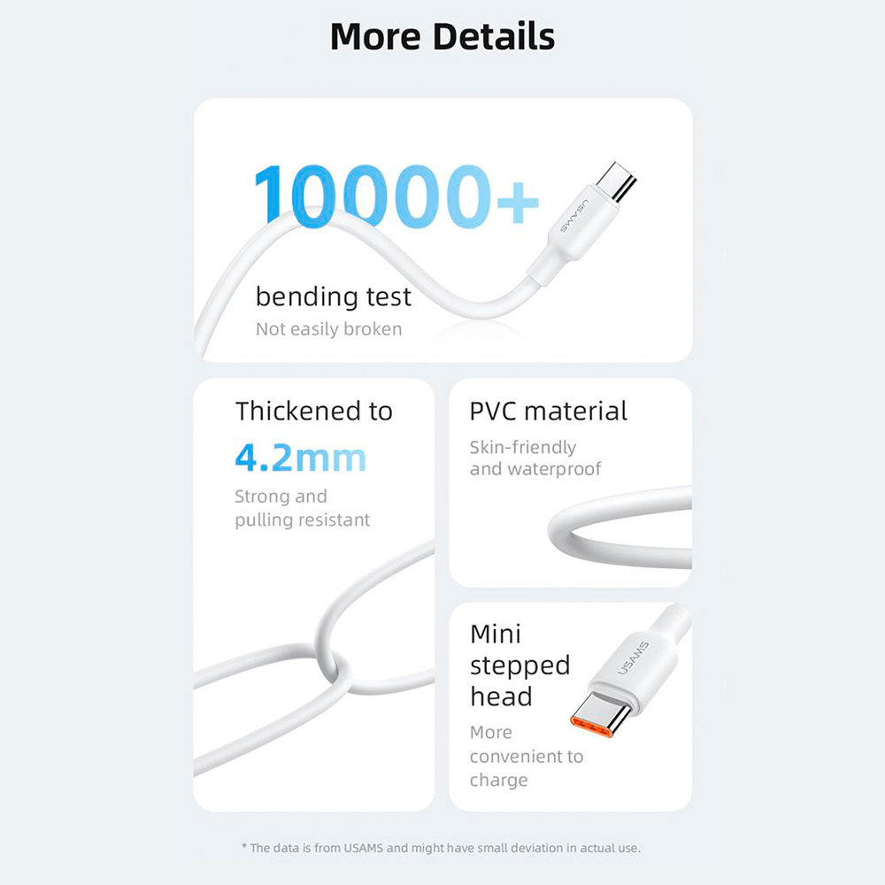5. Confiança e Segurança: Para sua tranquilidade, o Cabo Usams Tipo C para Tipo C PD 100W passa por rigorosos testes de qualidade, o que possibilita apresentar um produto com maior durabilidade. Garantia 90 dias.
