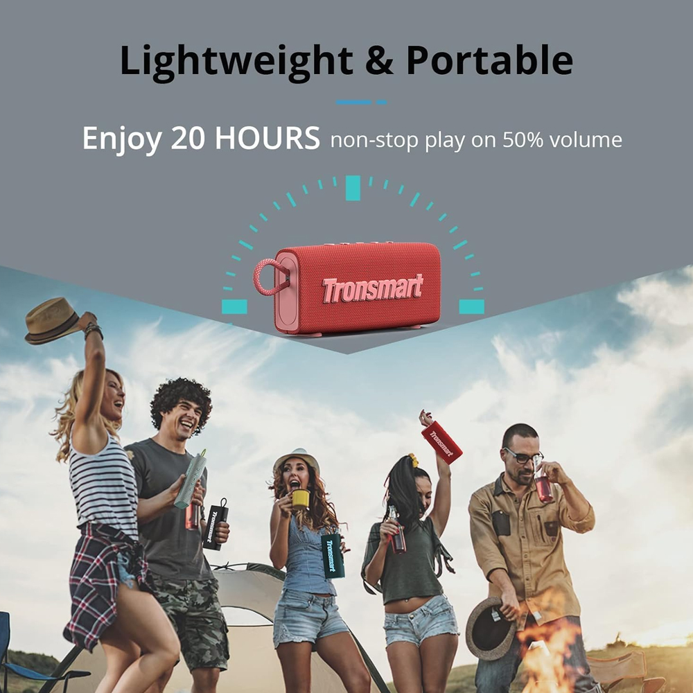 2. Portabilidade Máxima e Bateria Estendida: Leve seu speaker bluetooth Tronsmart Trip Red para qualquer aventura! Com design compacto, leve e uma impressionante autonomia de bateria de até 20 horas, a música te acompanha sem parar, ideal para viagens e uso diário.