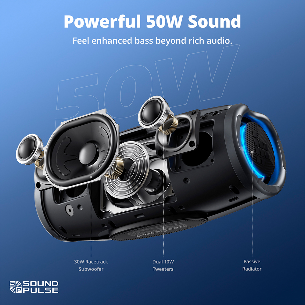 Caixa de Som Bluetooth Portátil Tronsmart Mirtune S100 com Graves Potentes, Áudio Imersivo e Bateria de Longa Duração. Speaker Sem Fio Resistente à Água, Ideal para Qualquer Ocasião