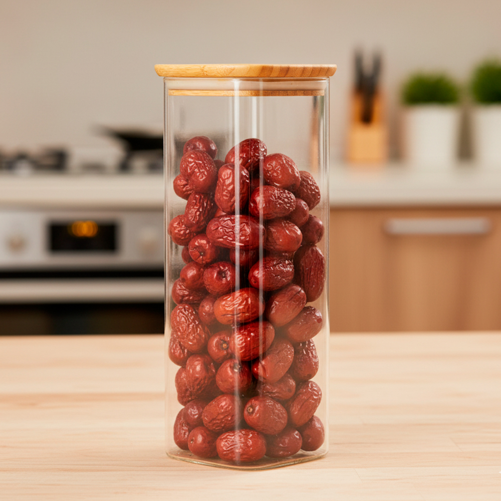 Pote De Vidro Life 1100ml Alimento Tampa Bambu Hermético