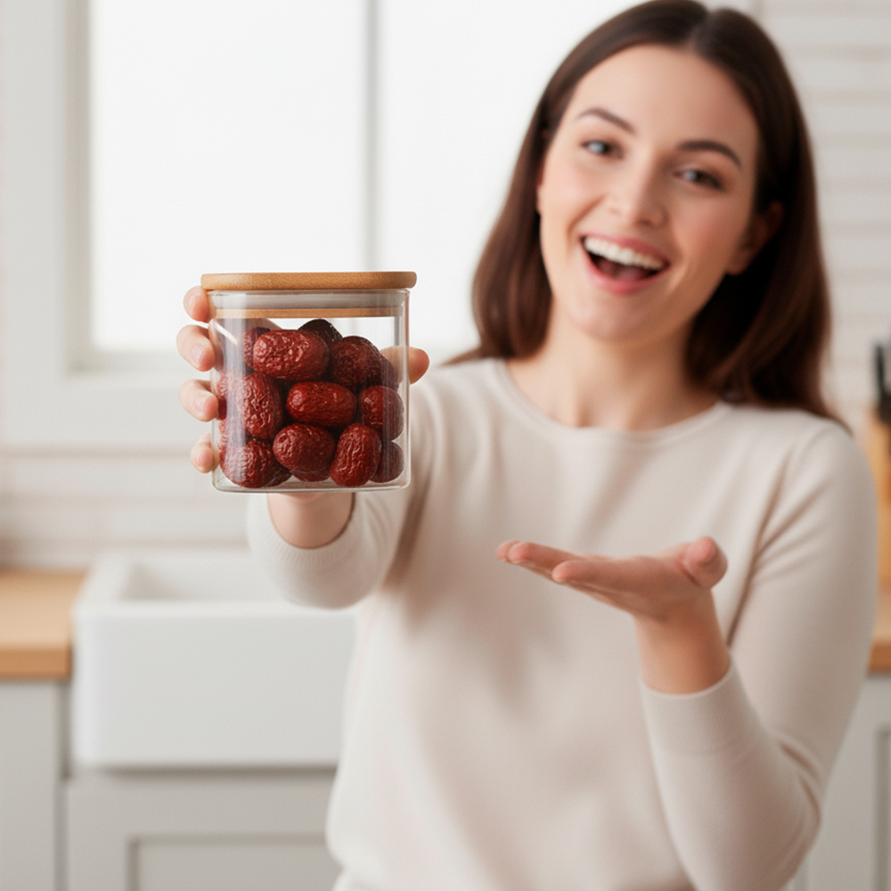 Pote De Vidro Life Alimento 1200ml Tampa Bambu Hermético