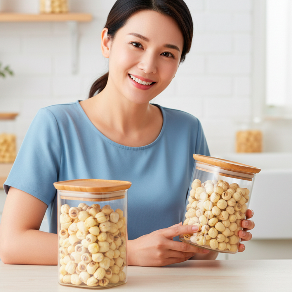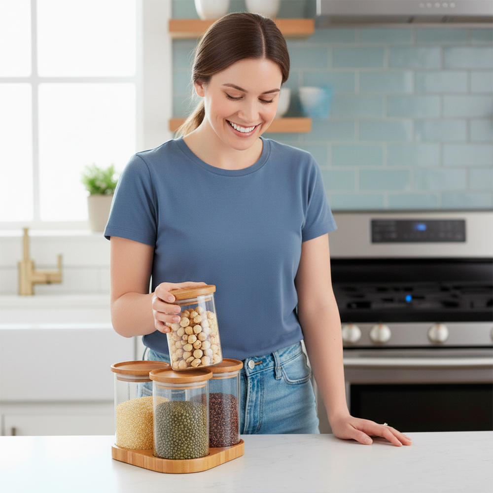 Potes de Vidro Hermético Alimento Life Com Tampa Bambu