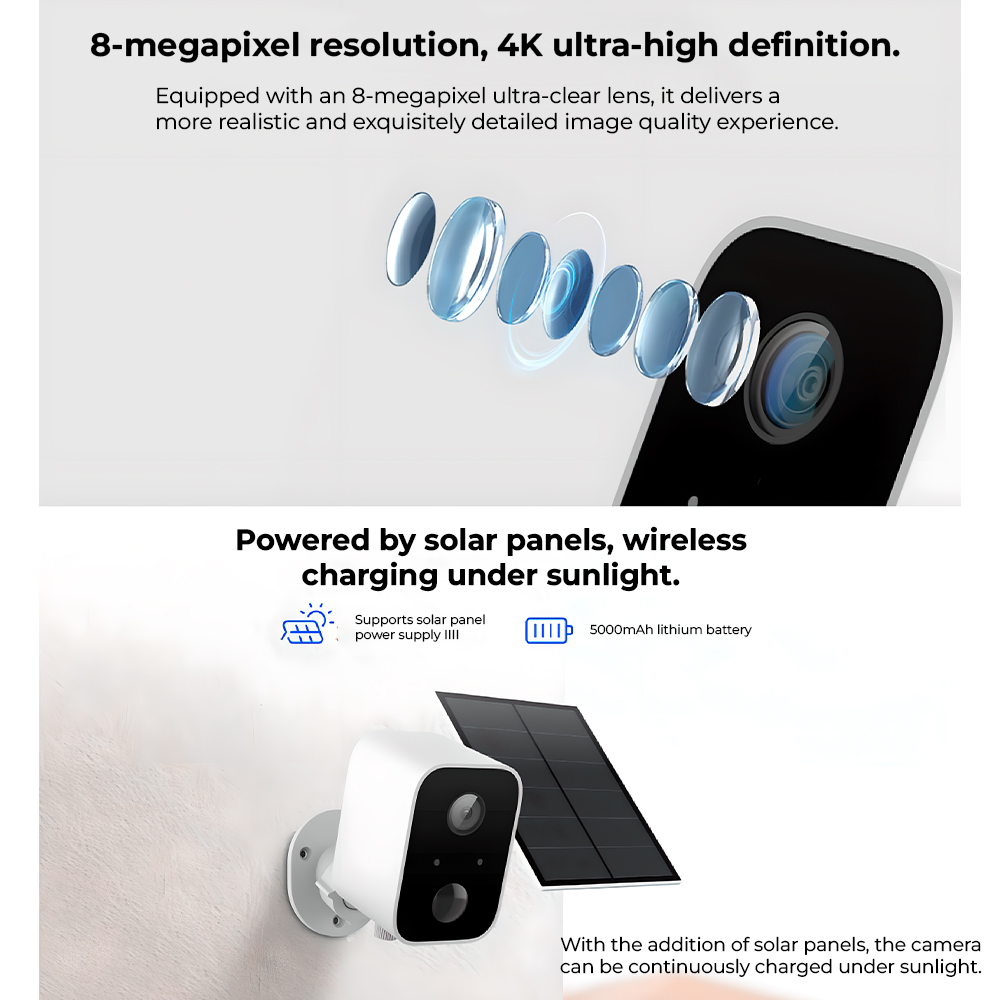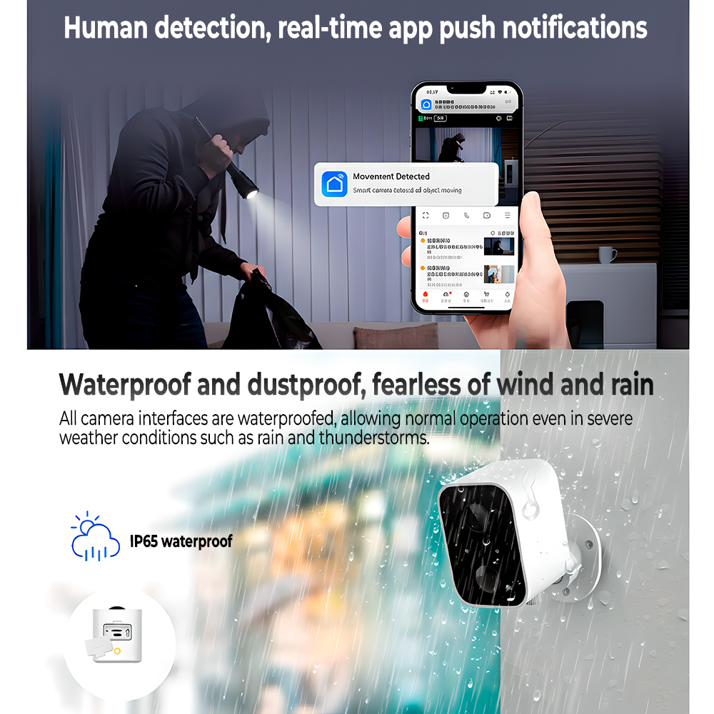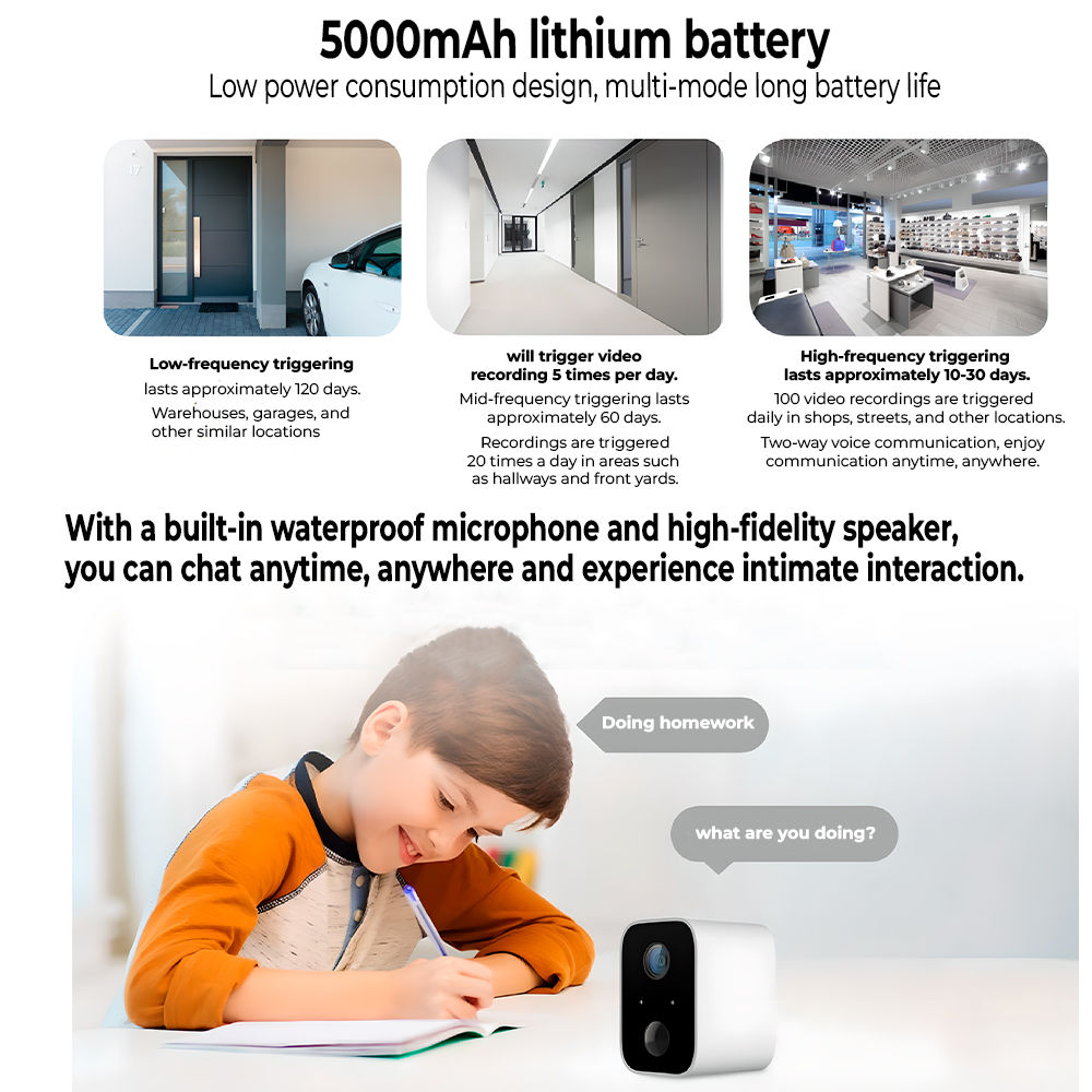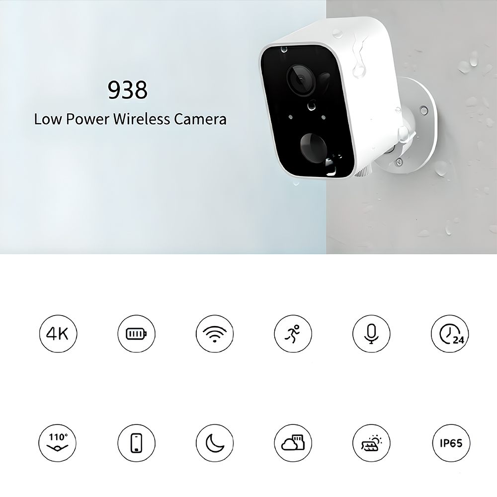 1. Totalmente Sem Fio com Bateria de Longa Duração: A câmera Aoni 938 elimina a necessidade de cabos de energia. Equipada com 2 baterias 18650 (4400/5000 mAh), oferece operação confiável com longa espera (standby) e conexão WiFi 2.4G estável.