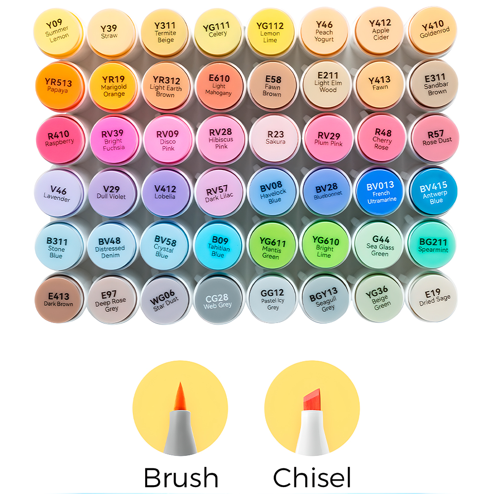 Kit Marcadores Ohuhu Honolulu 48 Cores Ponta Dupla Pastel