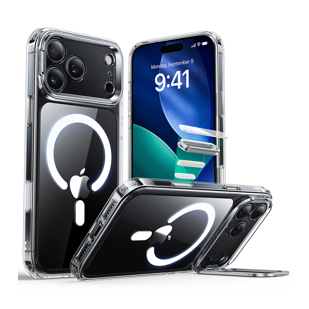 Capa ESR iPhone 17 Pro Max Halolock Classic Hybrid Transparente com Suporte Oculto e Botão de Controle de Câmera Integrado – Compatível MagSafe para Proteção e Conveniência